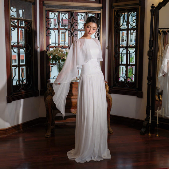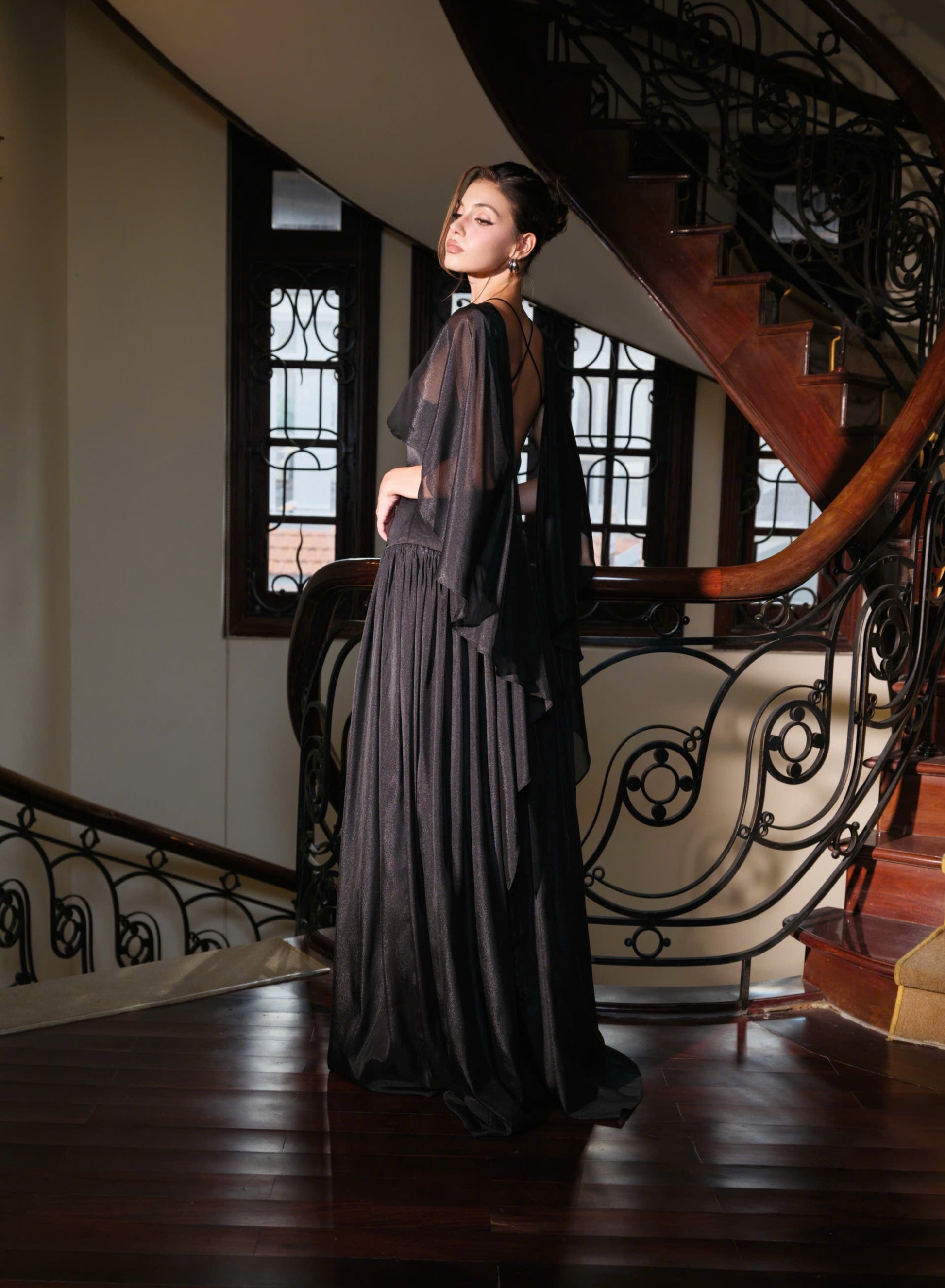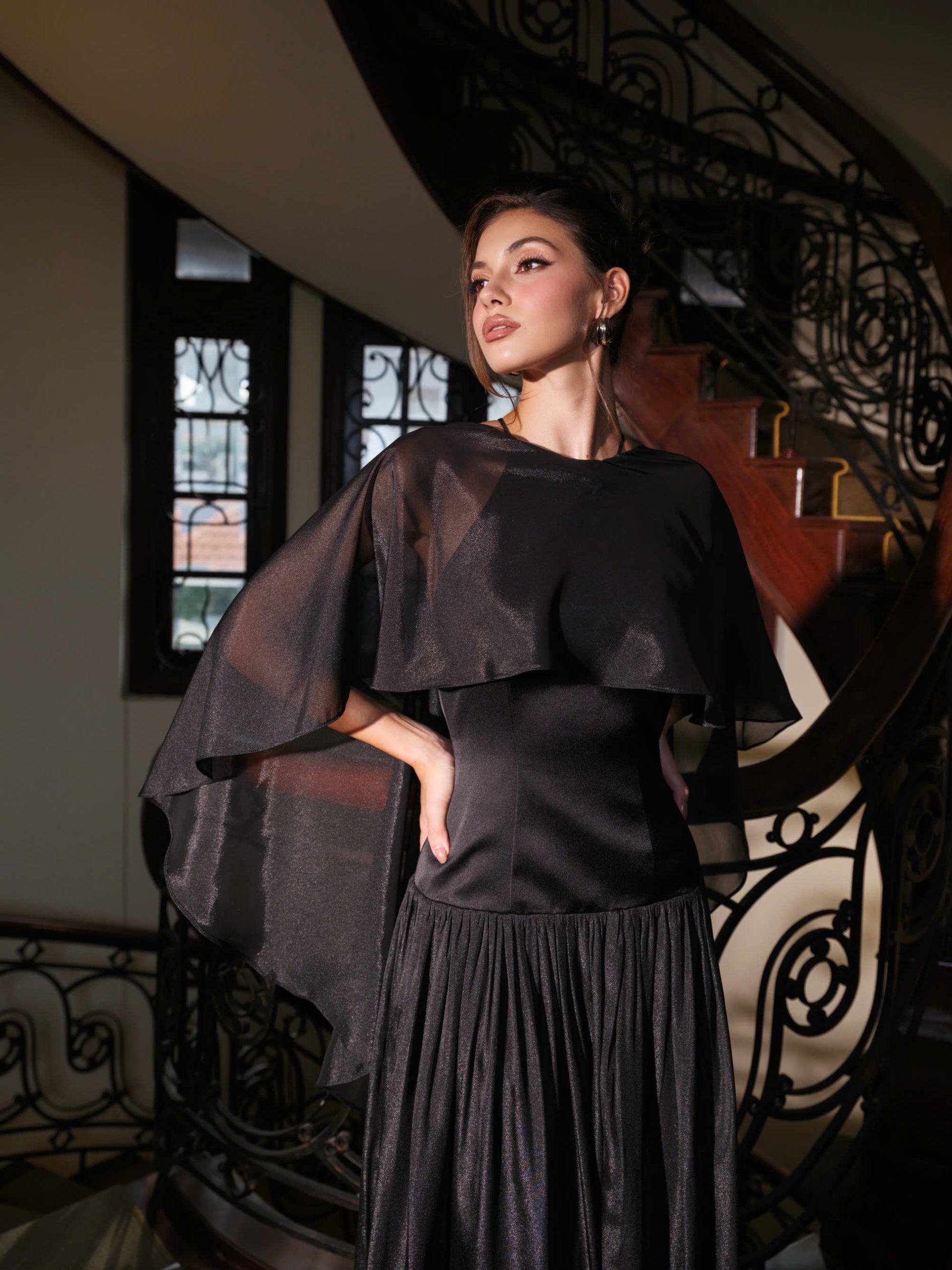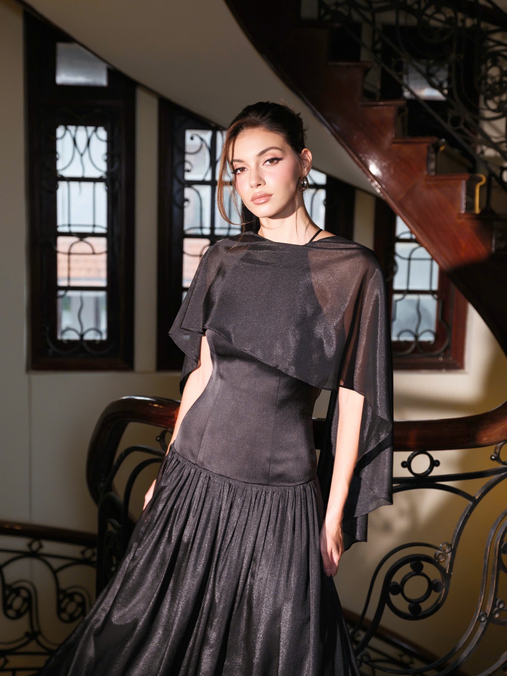 Crafted from a luxurious blend of silk and airy chiffon, this design enhances your silhouette with a flattering cinched waist and fluid, elegant movement.