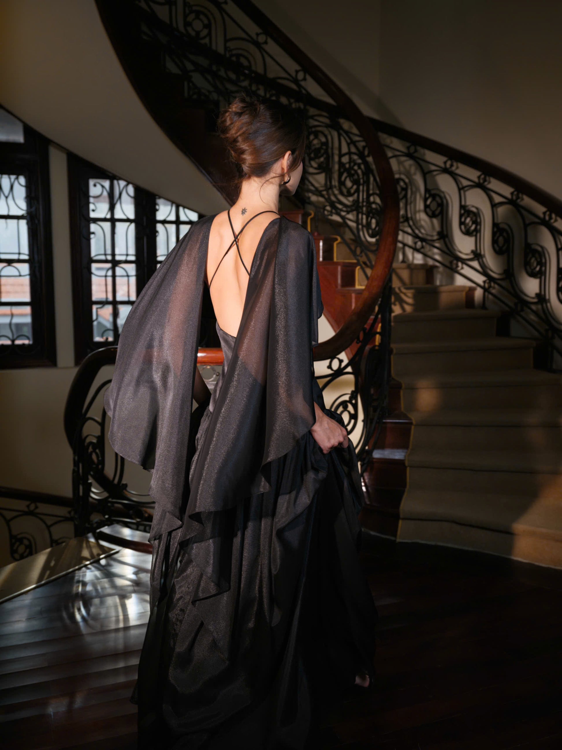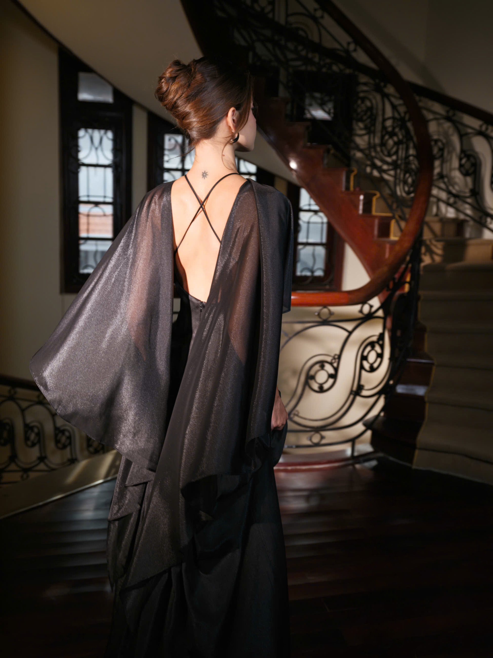 The convertible neckline allows for multiple styles — tie it into a bow, drape it crosswise, or let it fall effortlessly for a touch of romantic charm.
