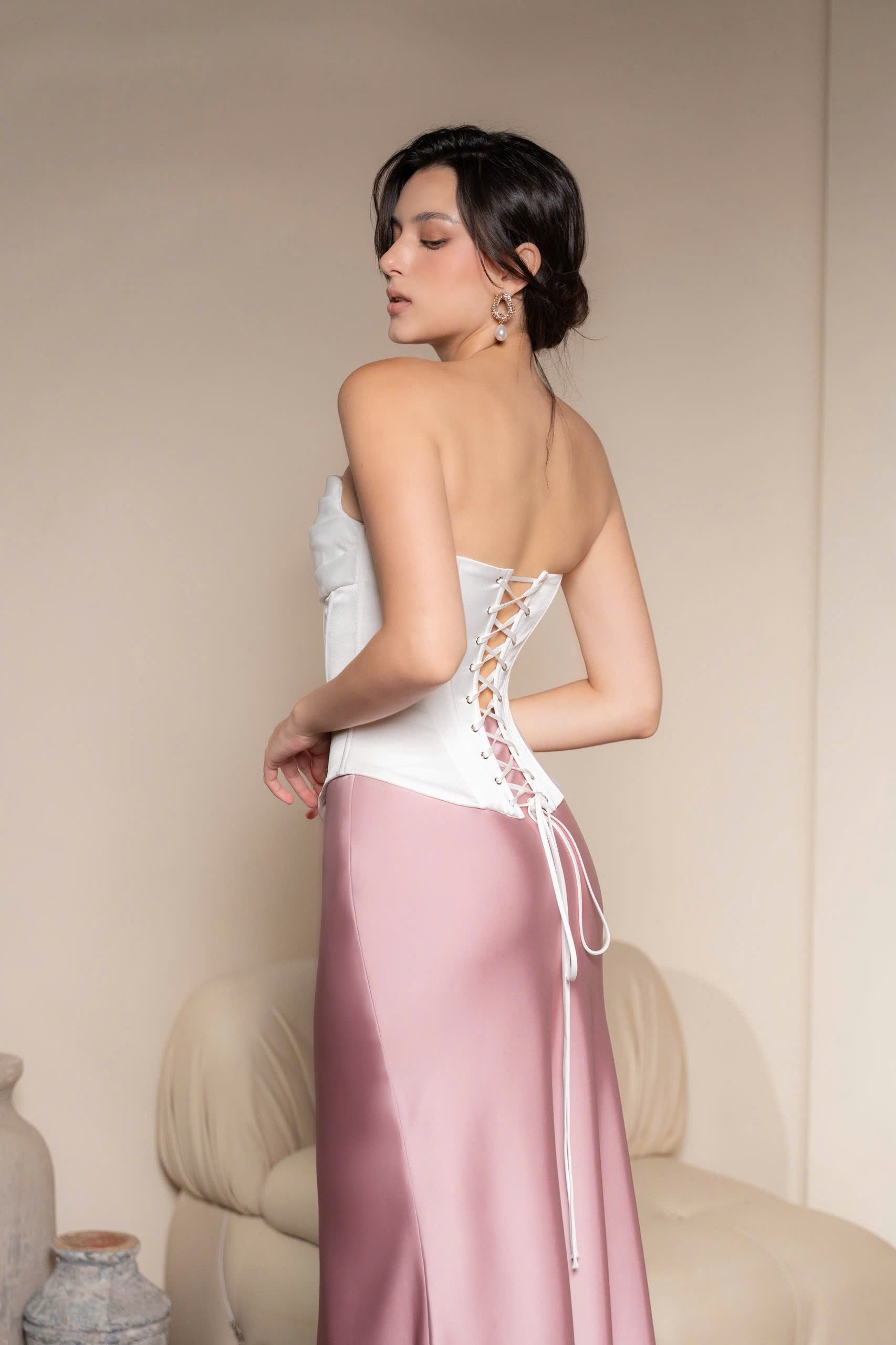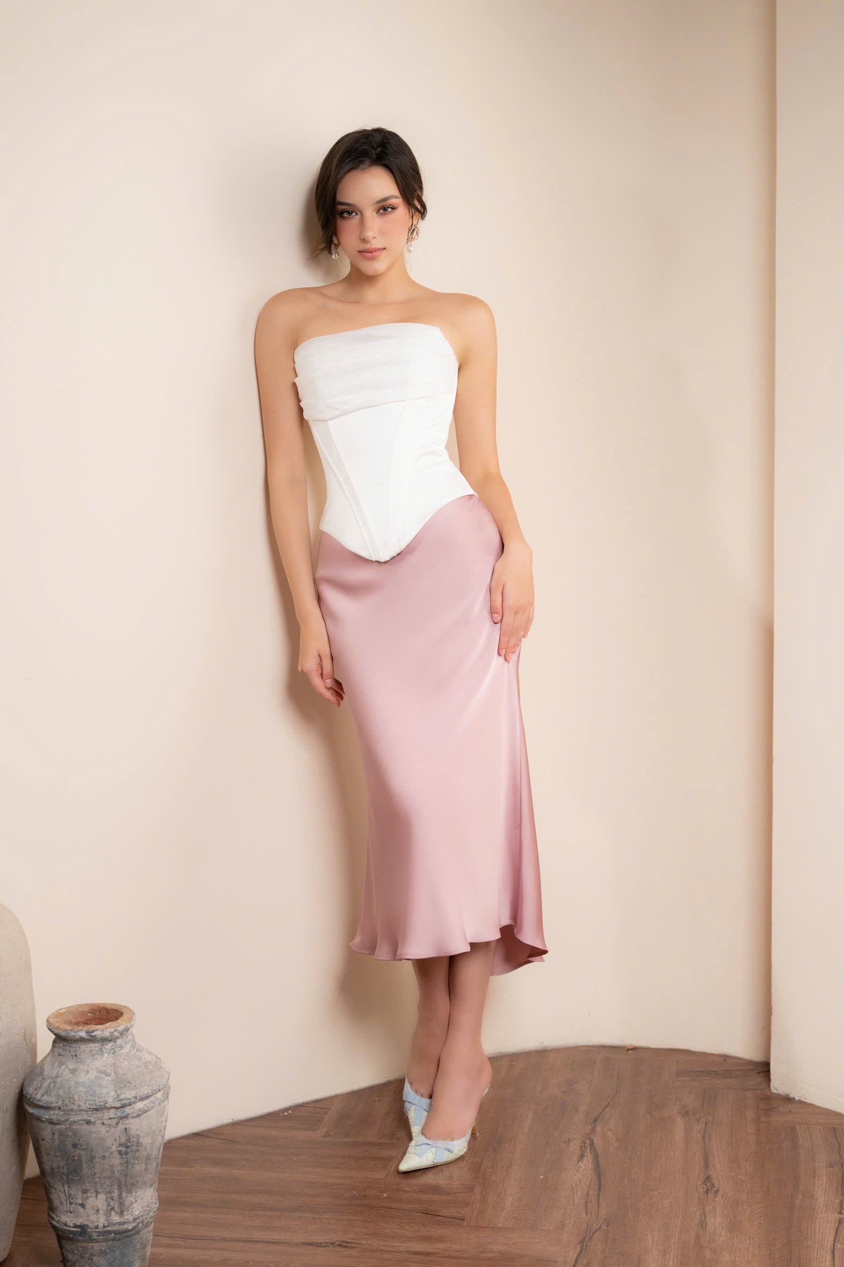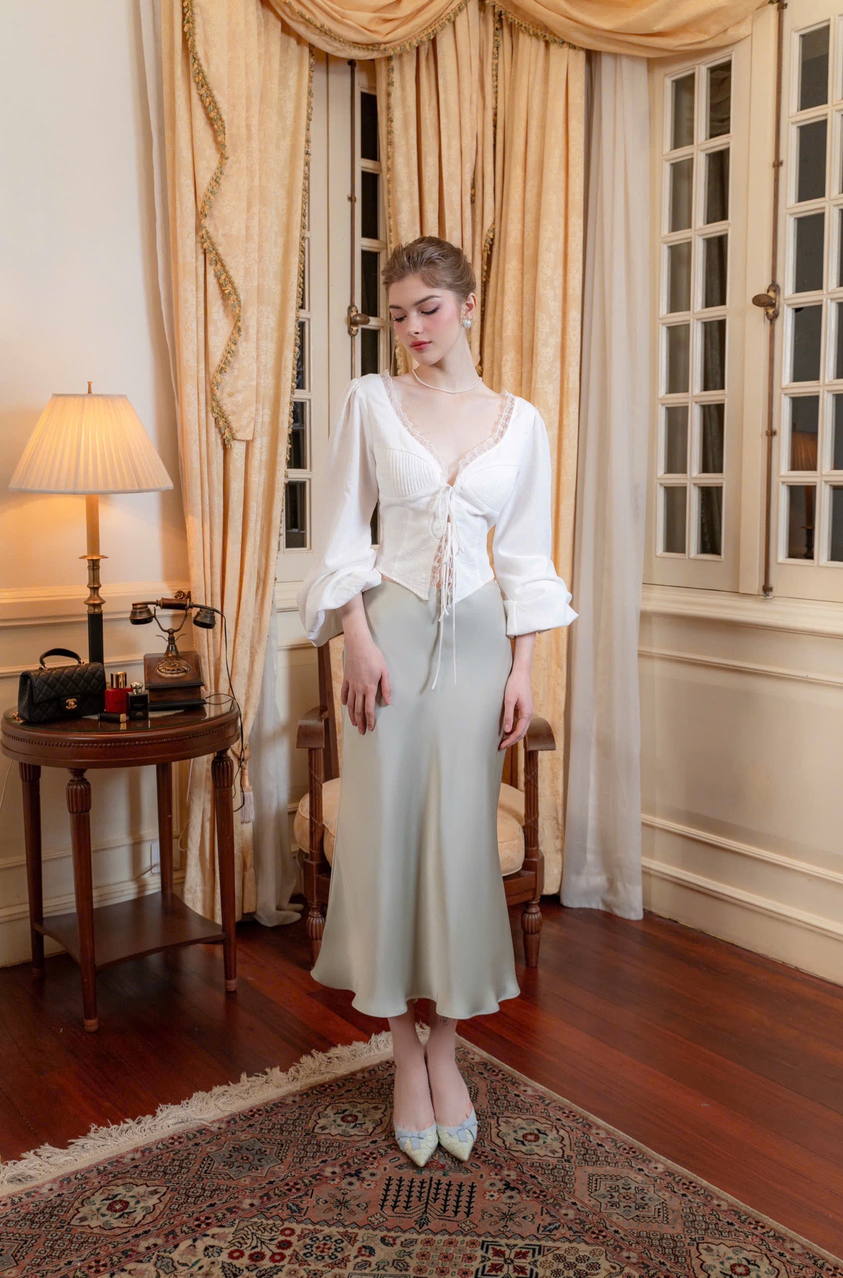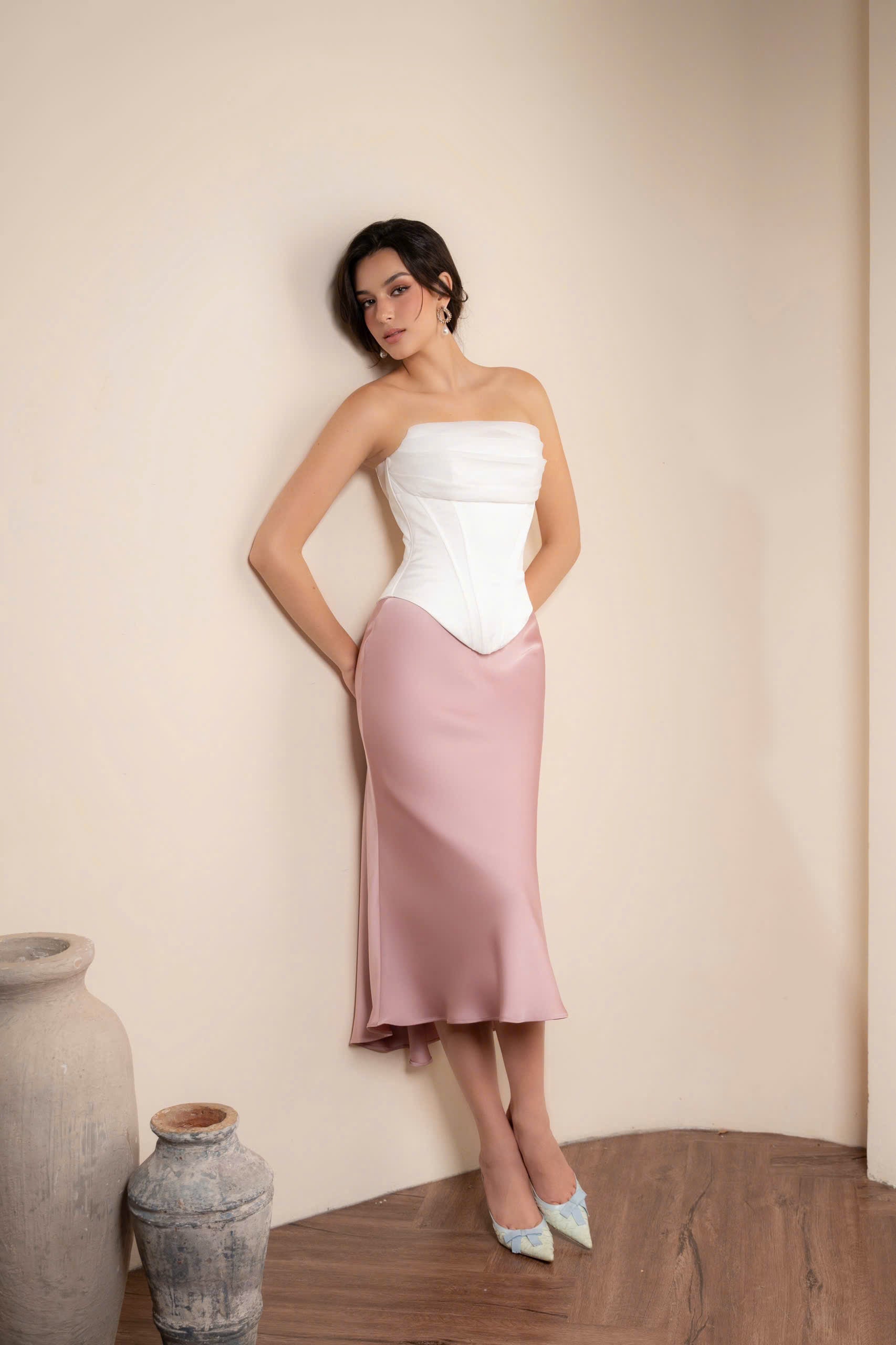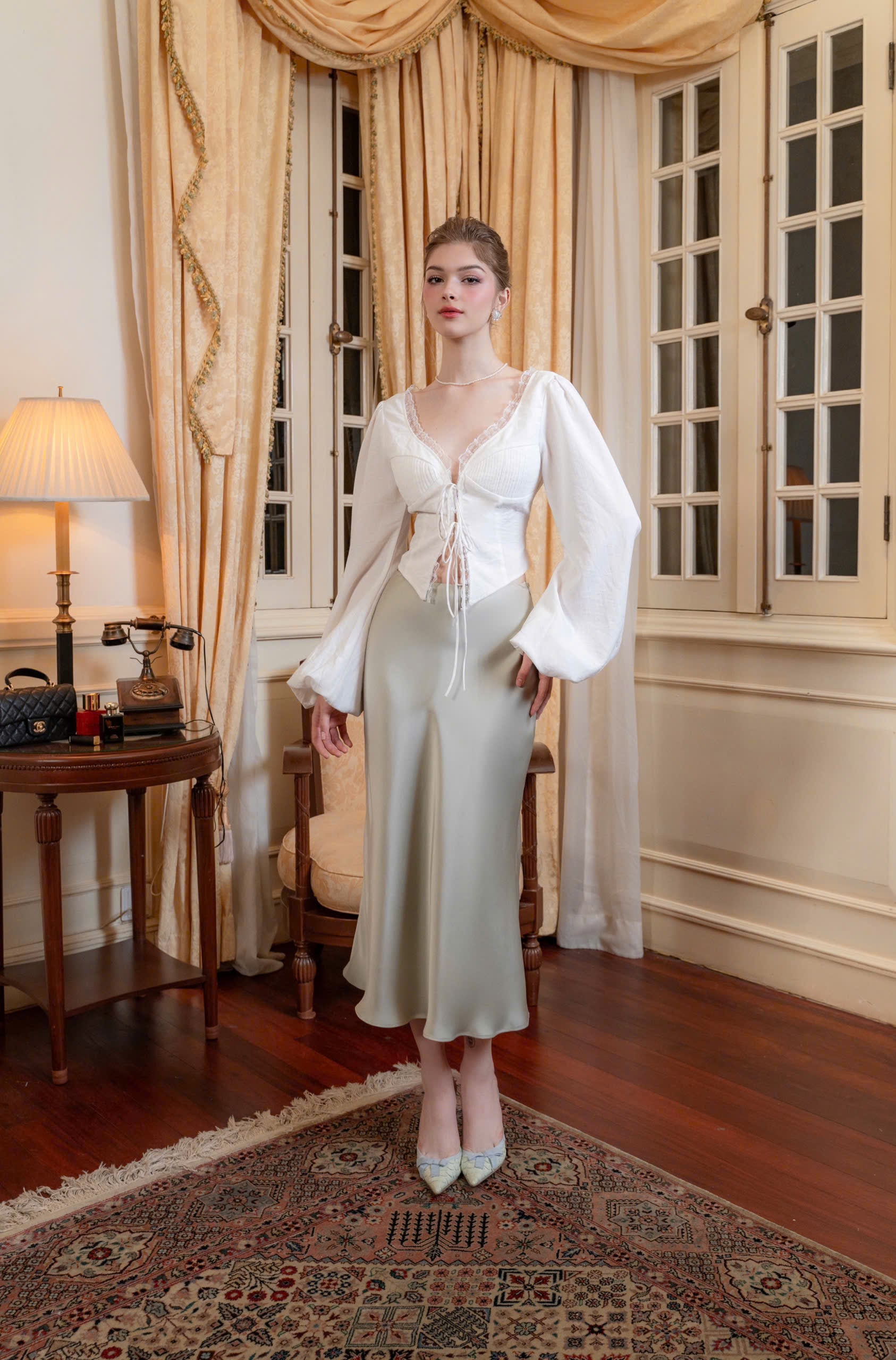 ANNA skirt are the perfect choice for spring days when the weather becomes cooler and more pleasant. The ANNA silk skirt featuring an asymmetrical design – a shorter front hem and a longer back hem – it creates a gentle and captivating flow with every step.