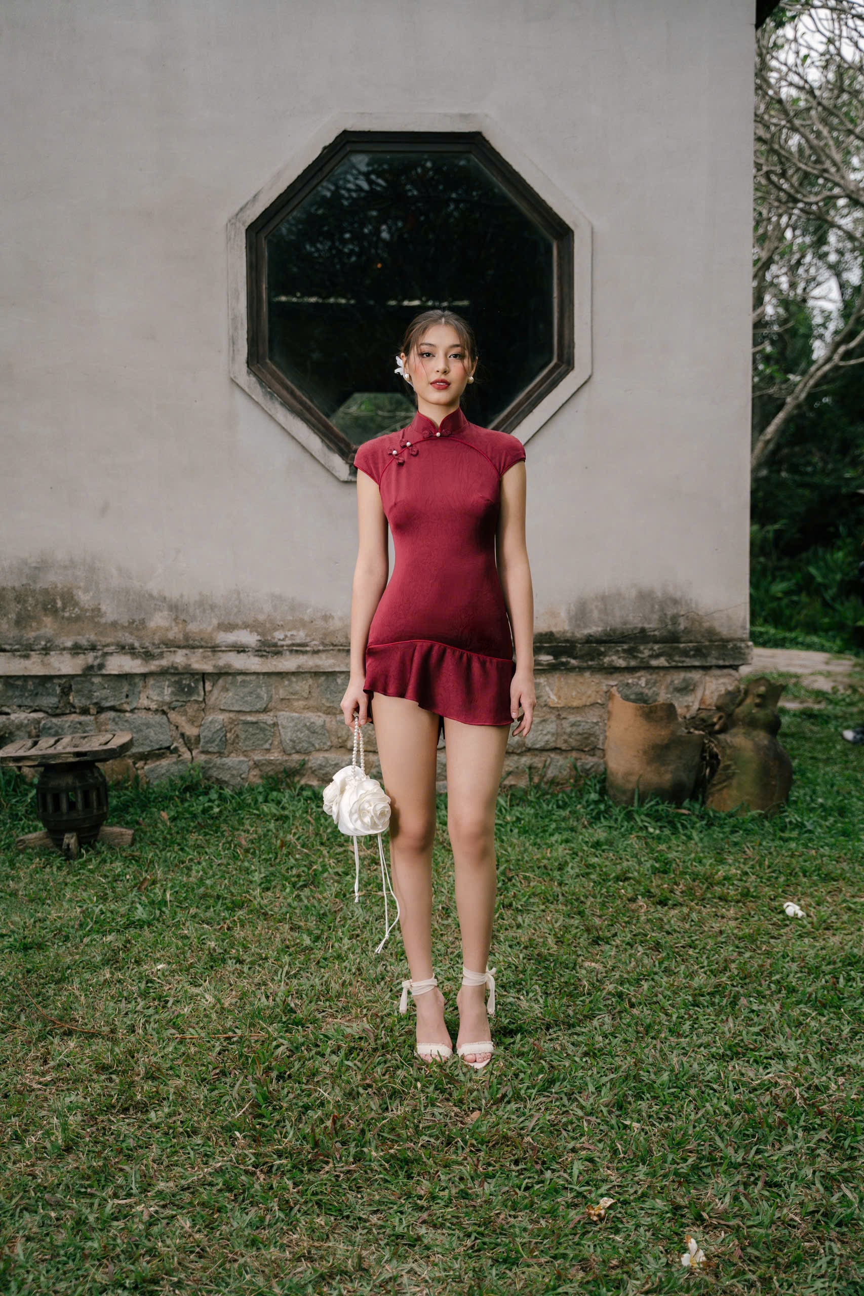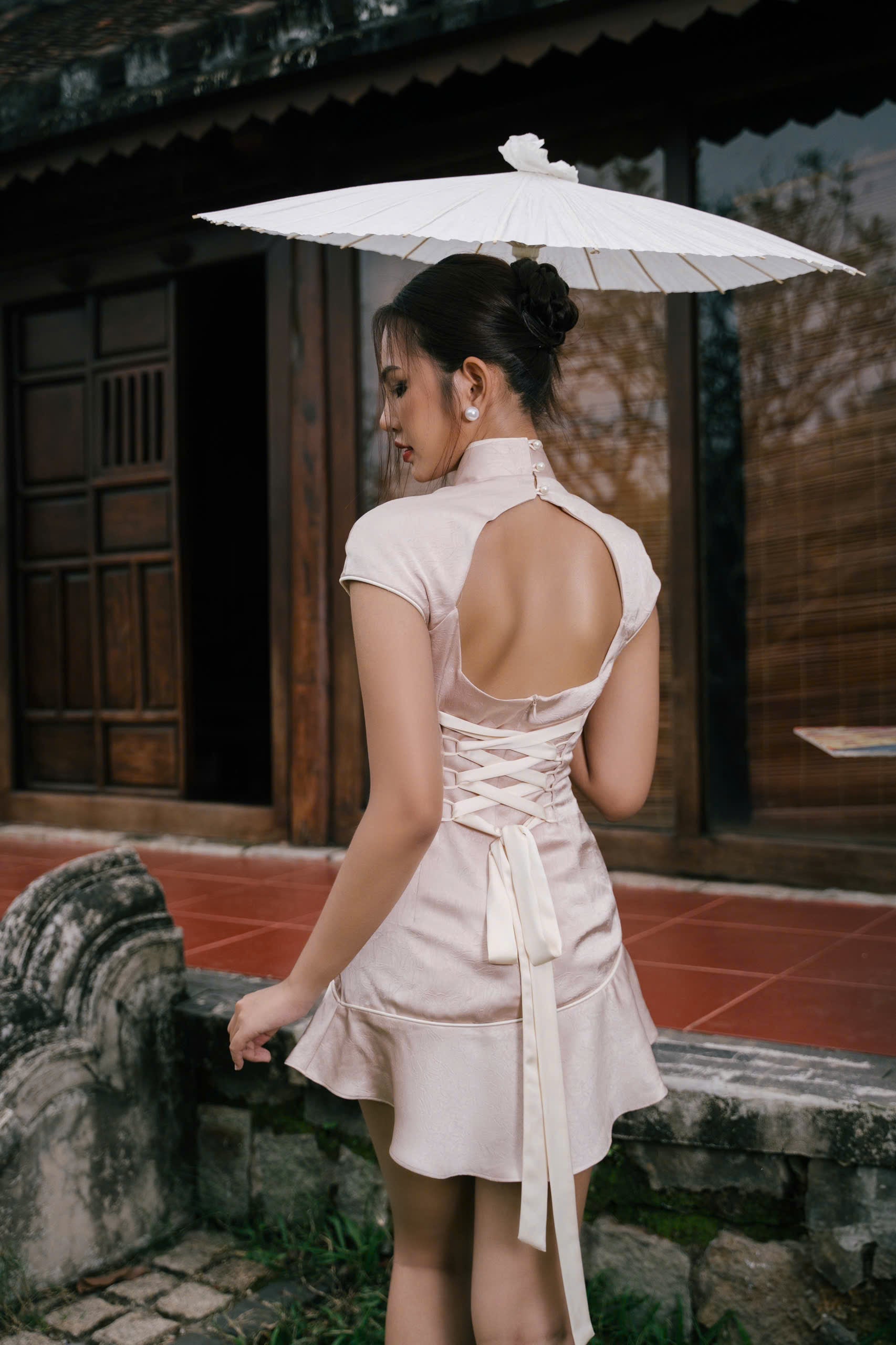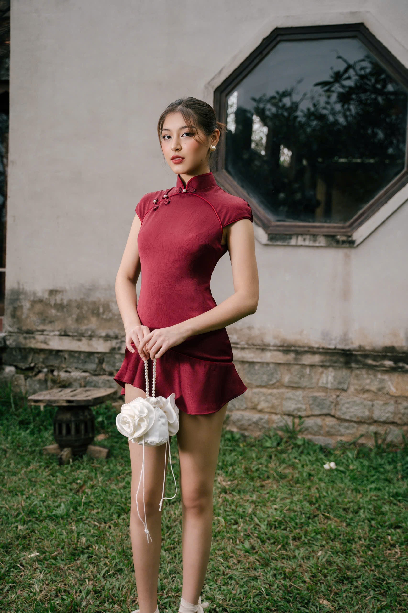 Regarding colors, Châu Anh comes in two versions: ruby red for a captivating look and pastel pink for a sweet, romantic touch.