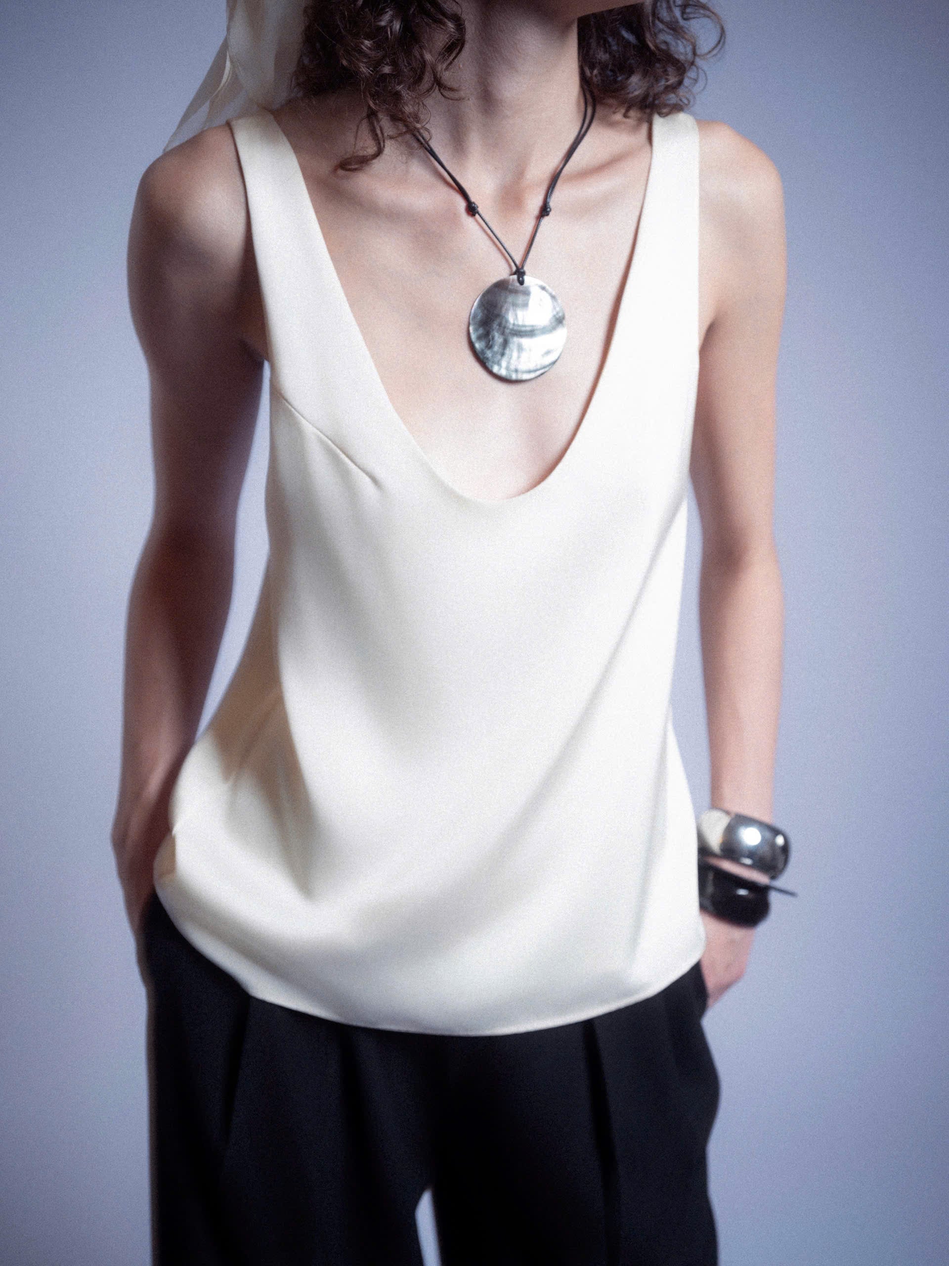 The FELOR TOP offers an airy, refreshing feel with a versatility that makes styling effortless—beautifully complementing everything from mini and midi skirts to tailored trousers. Perfect for creating chic, easygoing looks for any occasion.