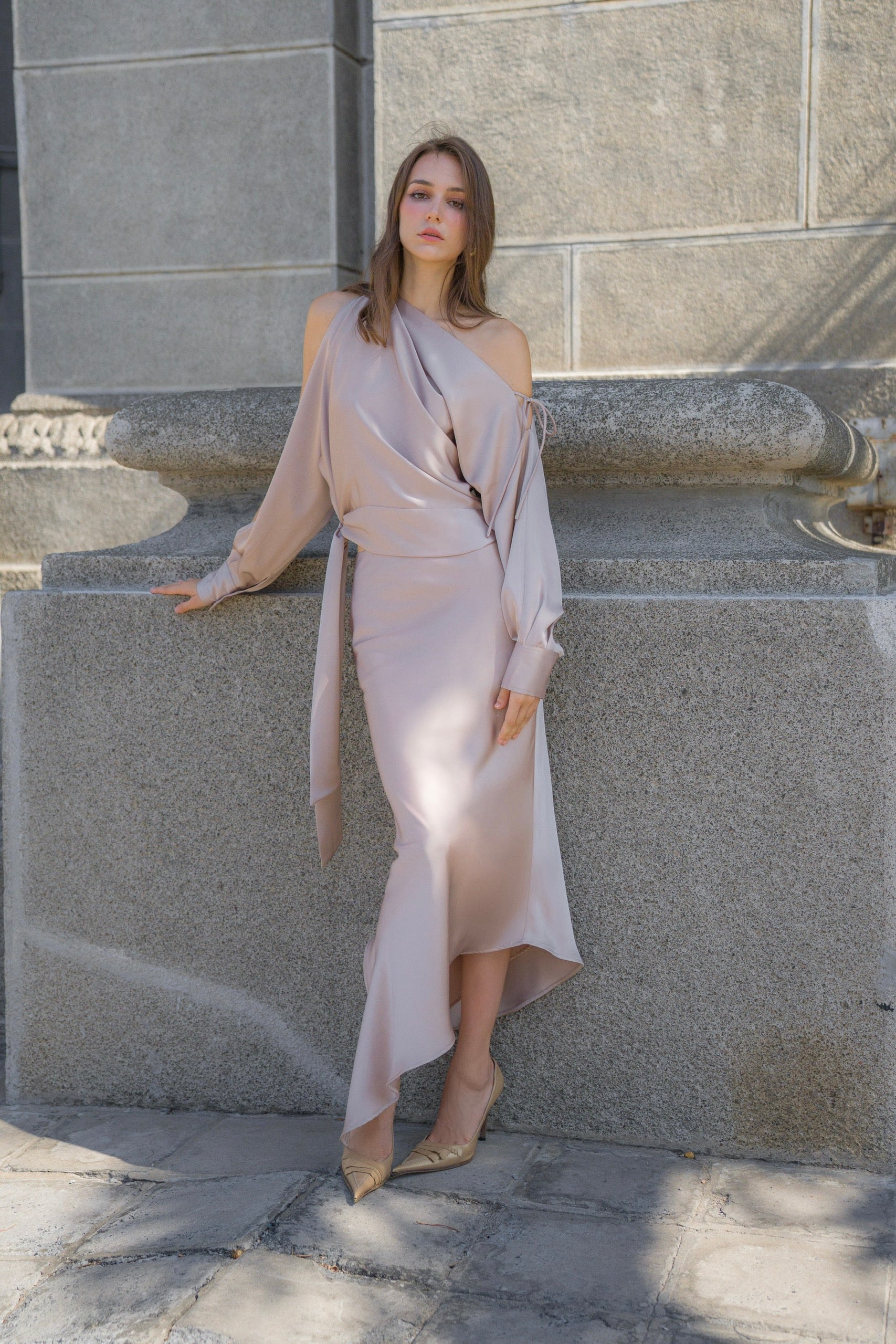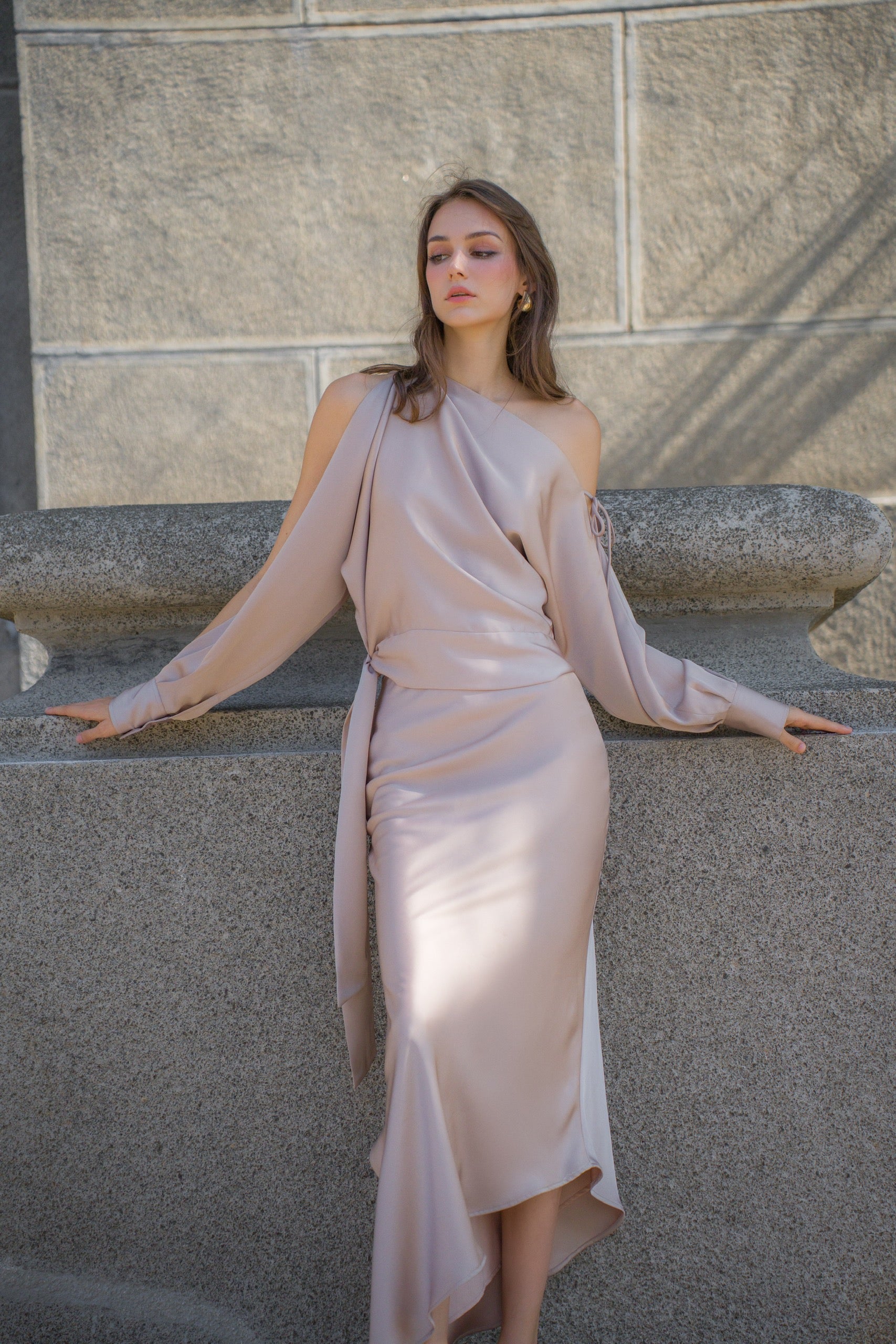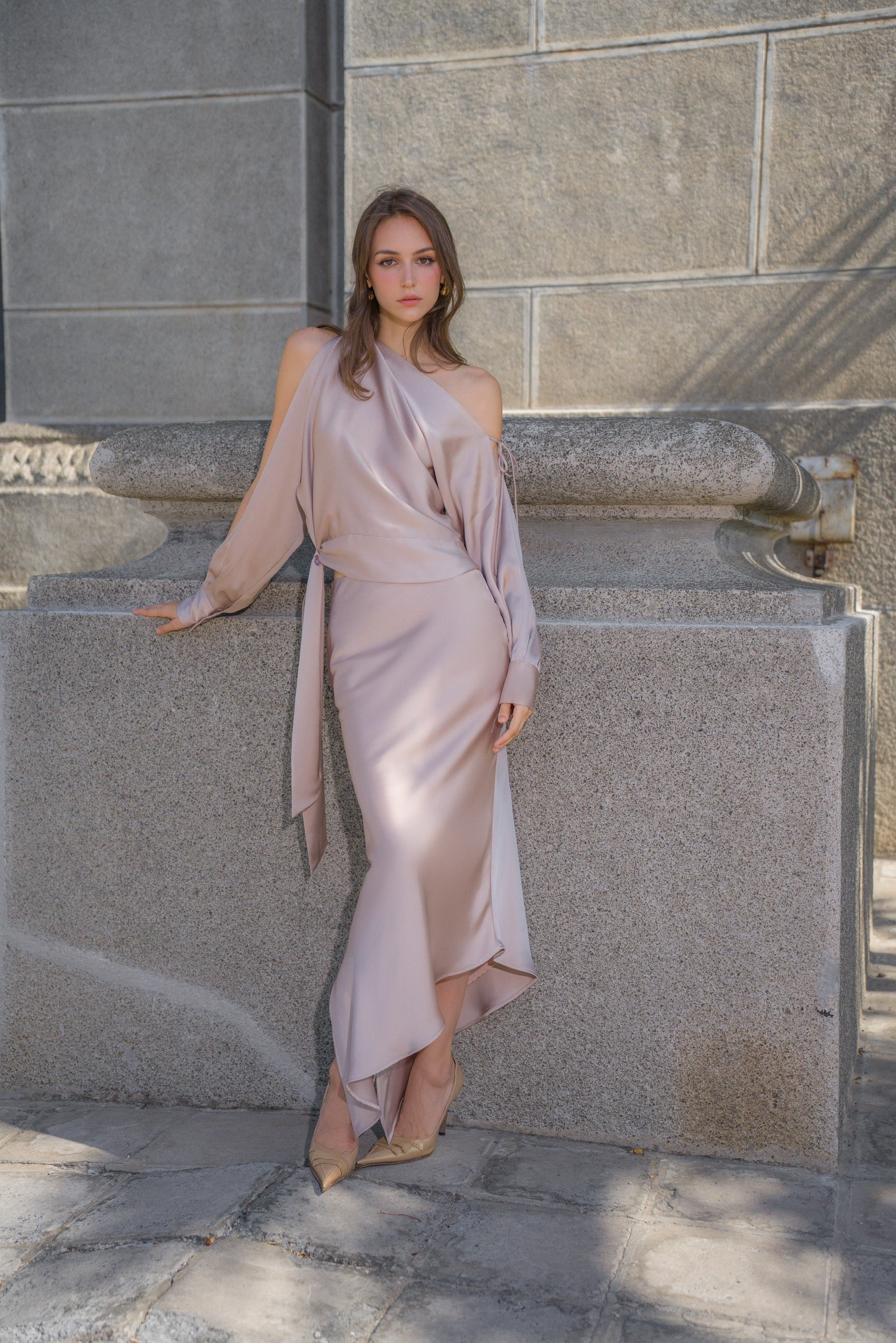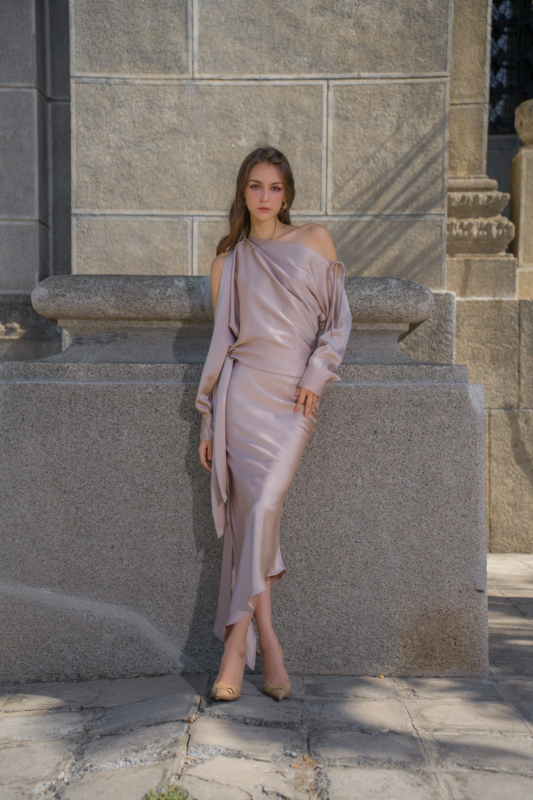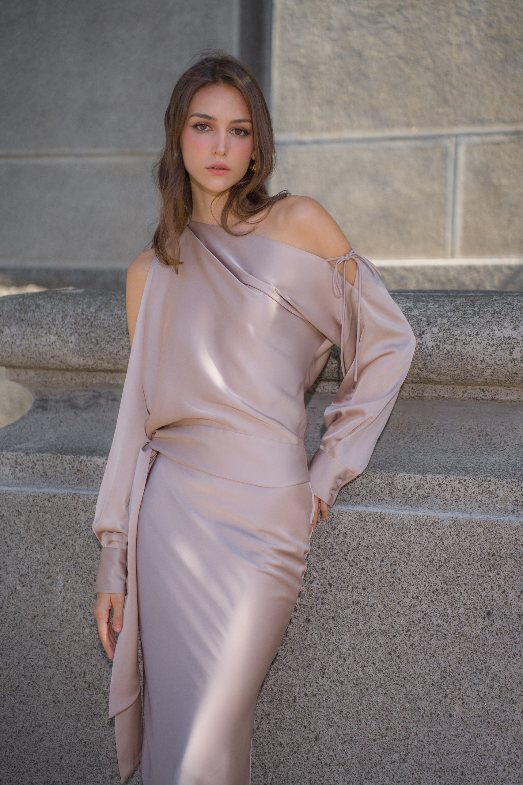 Besides romantic, colorful party designs, Kisserine also offers minimalist outfits captured at different locations in the city. Still based on the main silk material, always suitable for all weather and exalting women's femininity and unobtrusive elegance. Send her a small collection in the spring - summer weather.