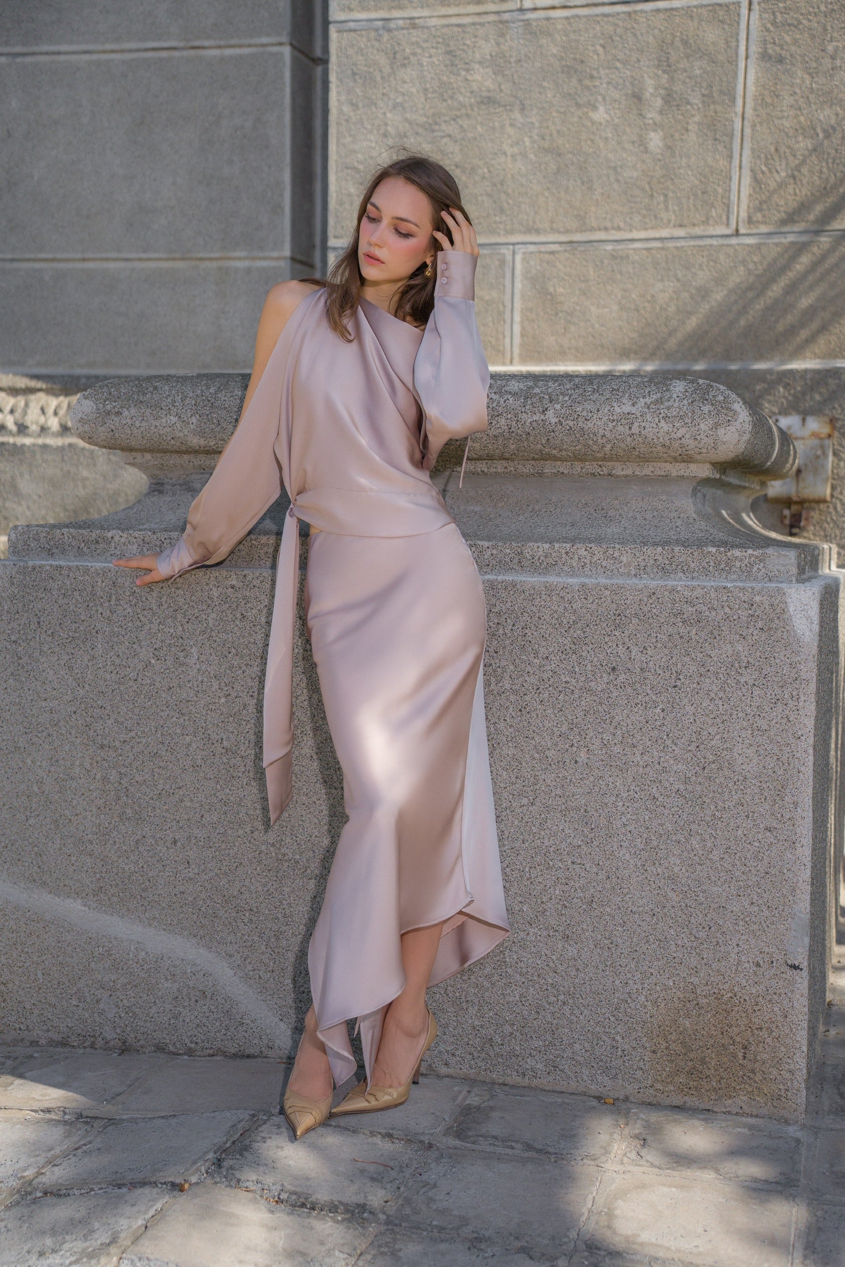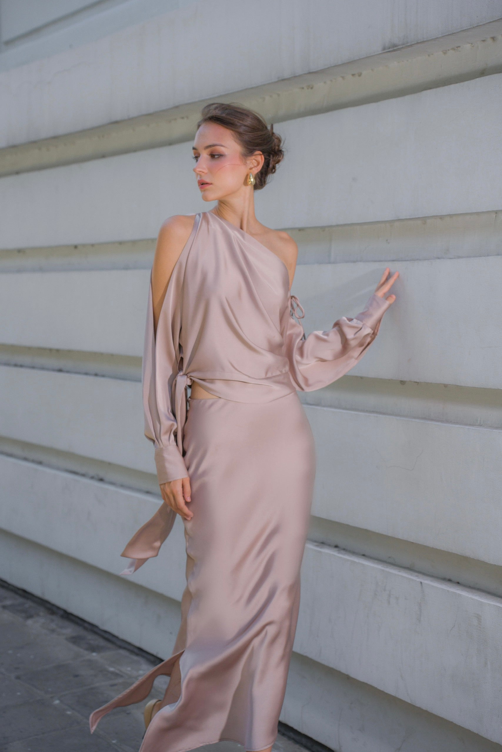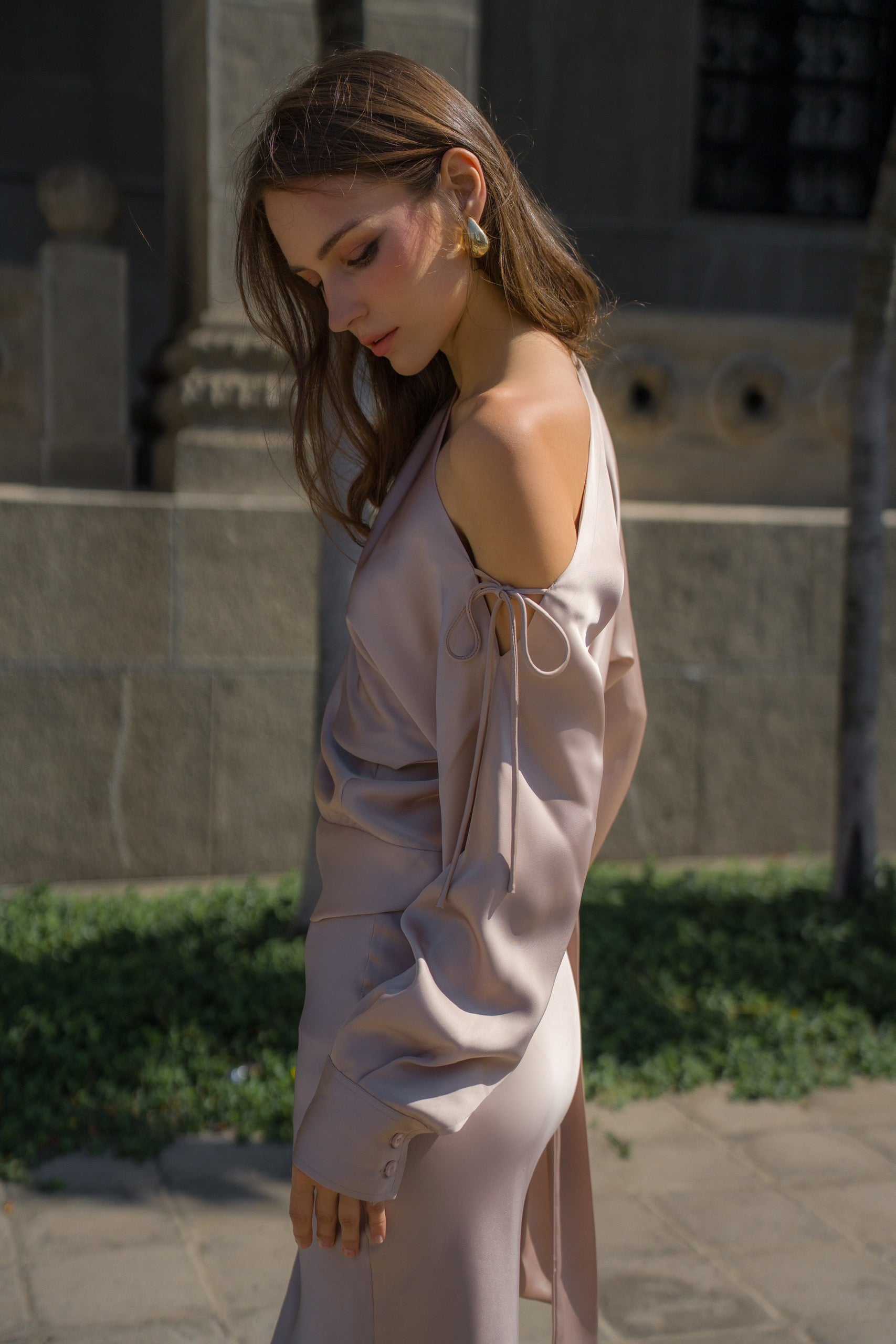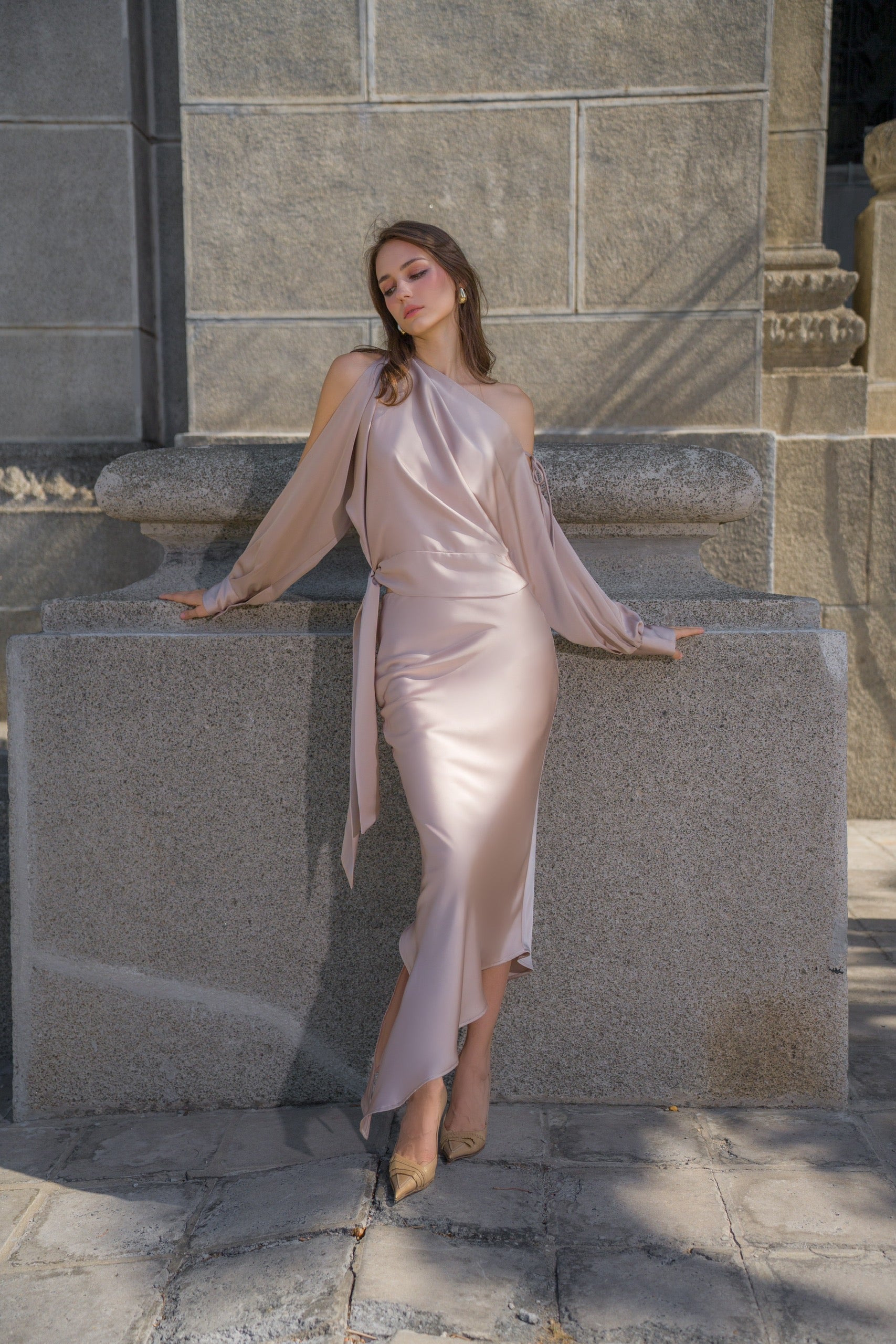 Besides romantic, colorful party designs, Kisserine also offers minimalist outfits captured at different locations in the city. Still based on the main silk material, always suitable for all weather and exalting women's femininity and unobtrusive elegance. Send her a small collection in the spring - summer weather.