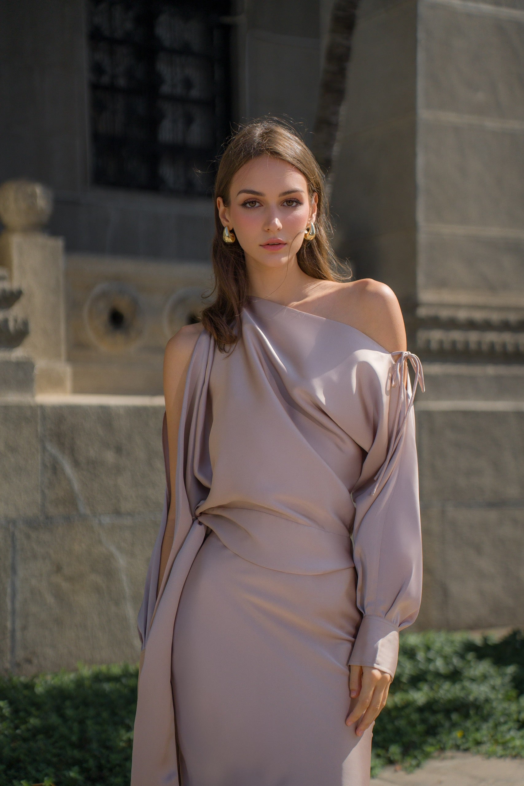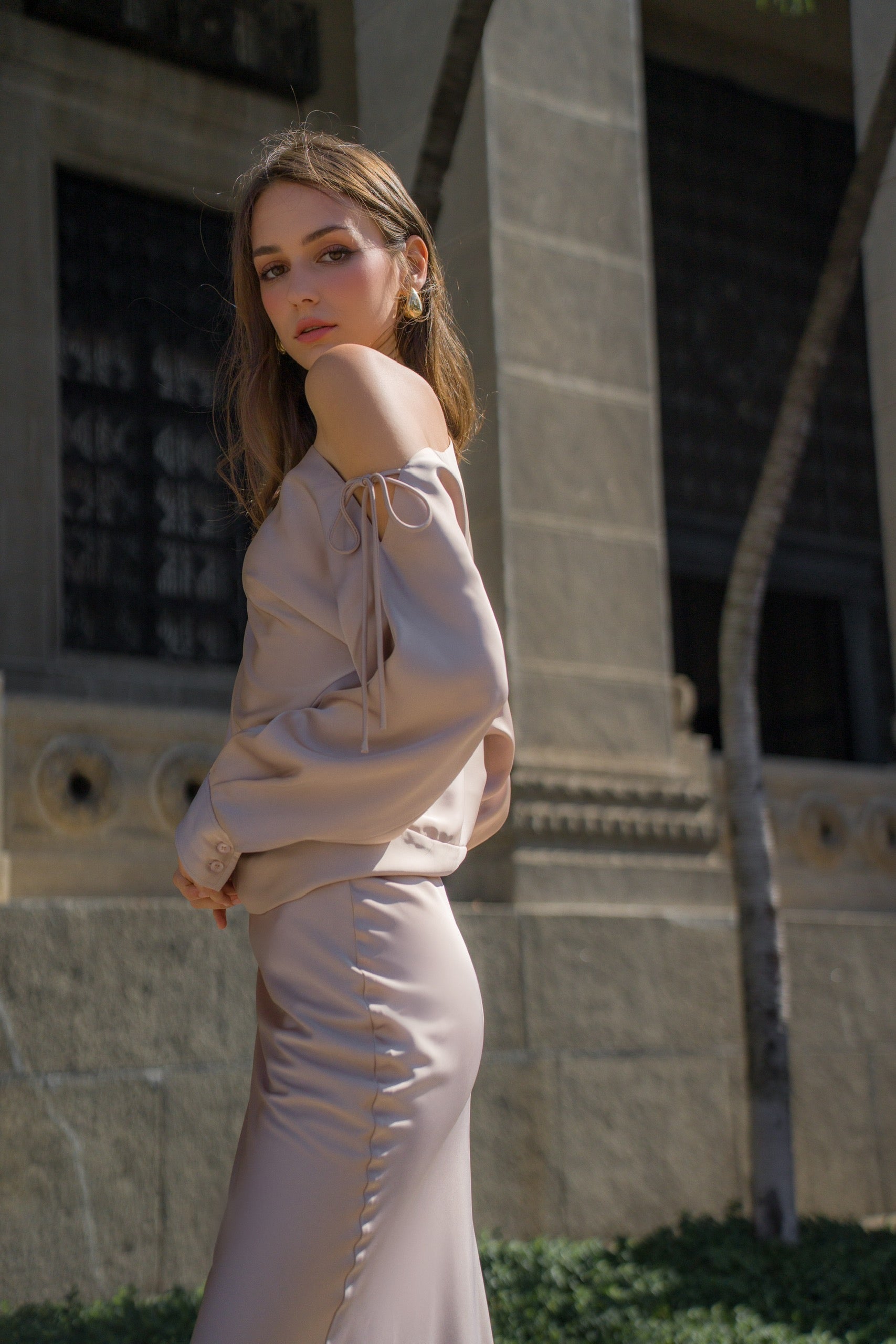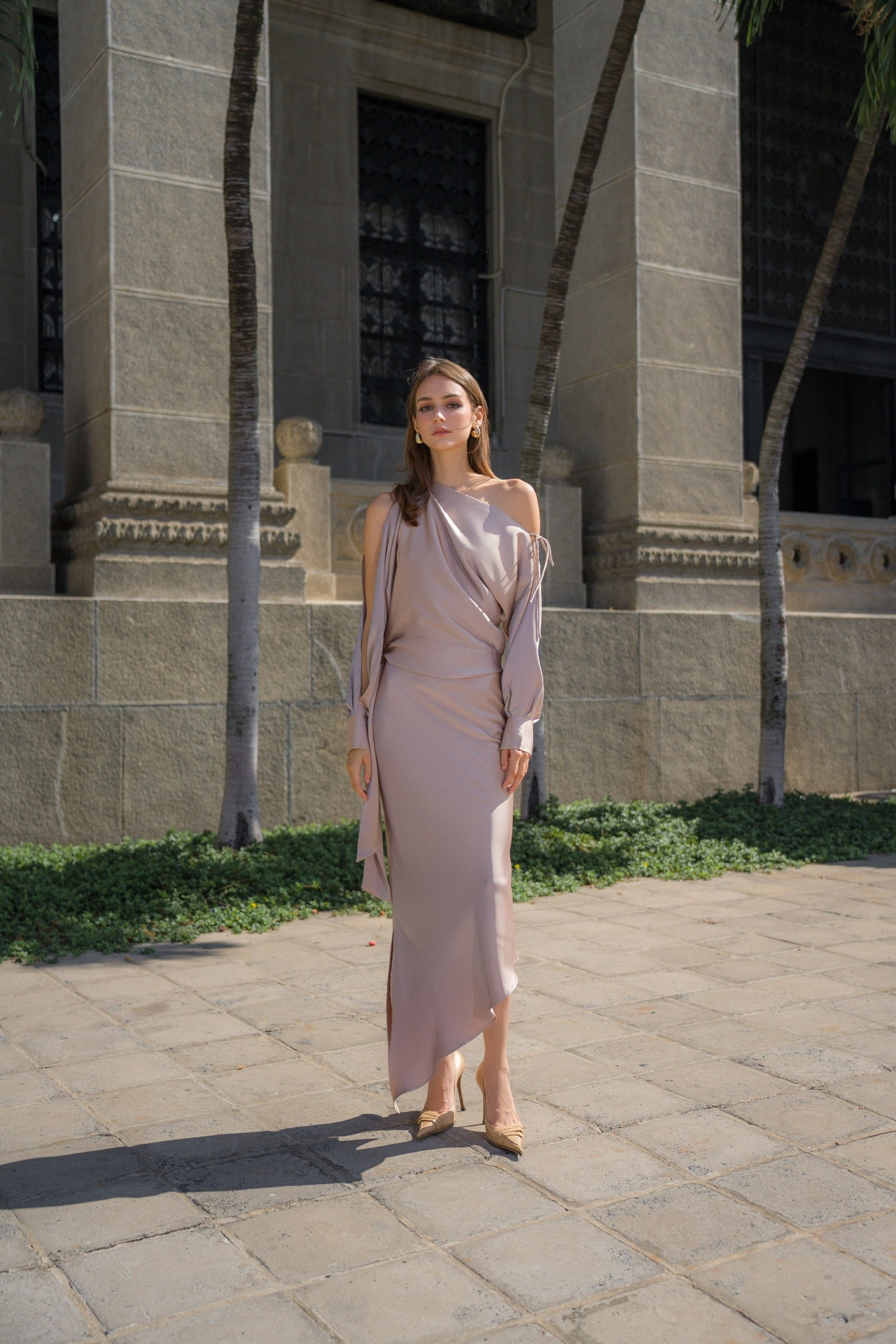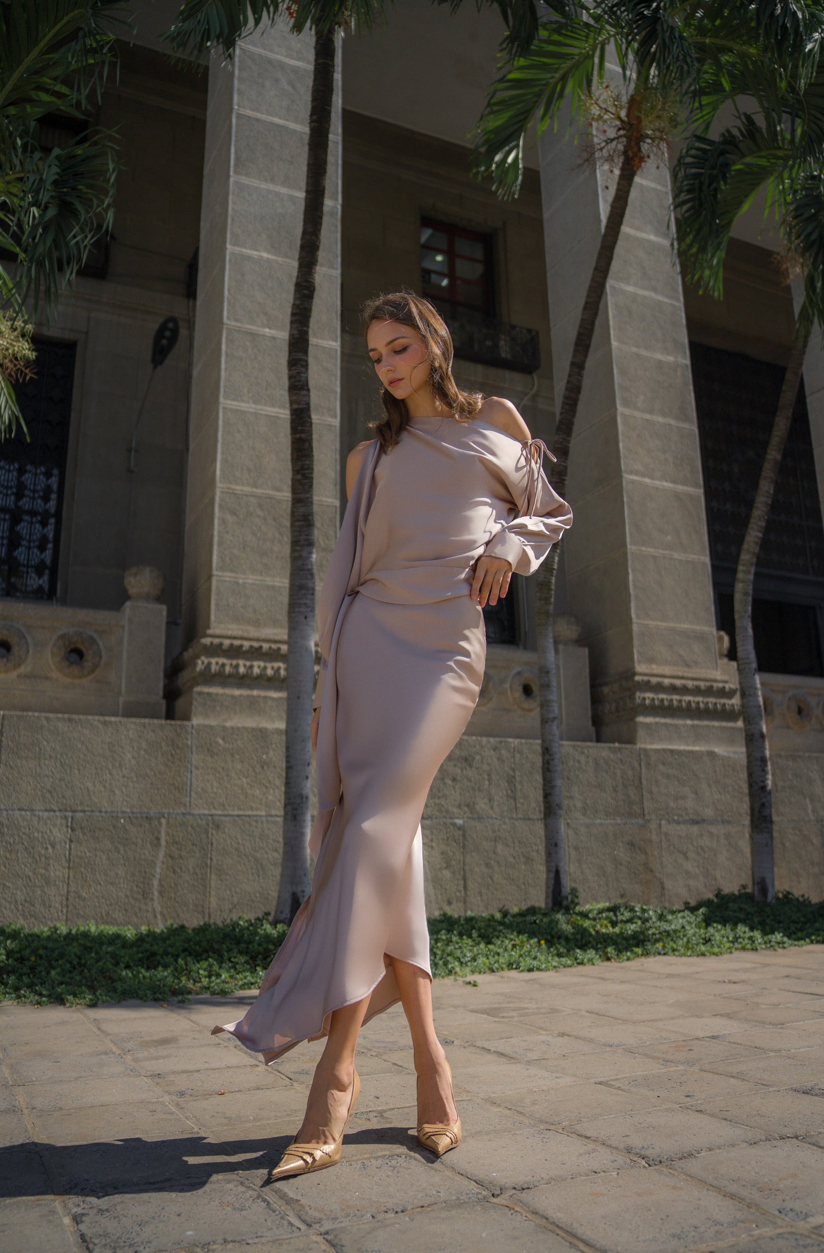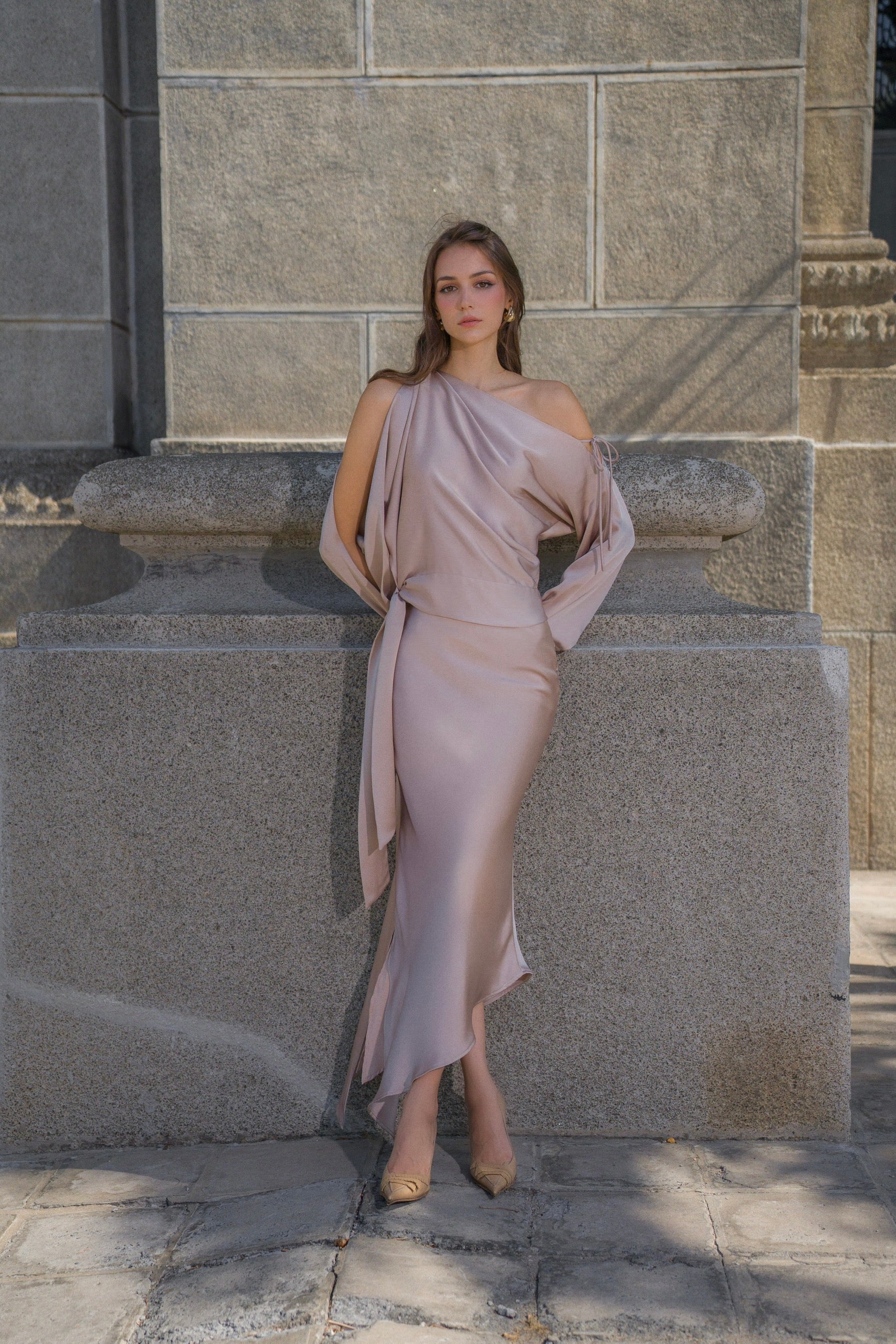 Besides romantic, colorful party designs, Kisserine also offers minimalist outfits captured at different locations in the city. Still based on the main silk material, always suitable for all weather and exalting women's femininity and unobtrusive elegance. Send her a small collection in the spring - summer weather.