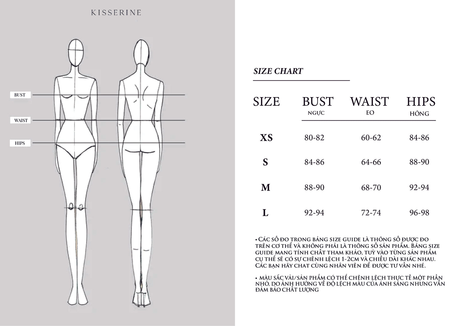 - Kisserine is not responsible for incorrect advice given by staff, as online consultations are only indicative and cannot be 100% accurate. Each product has standard measurements and depends significantly on the wearer’s body shape.
