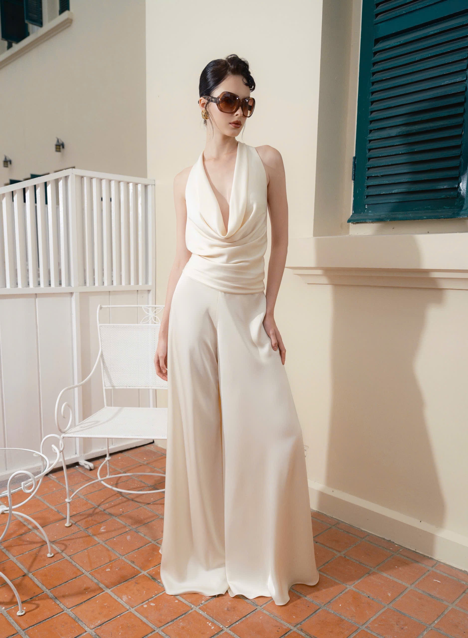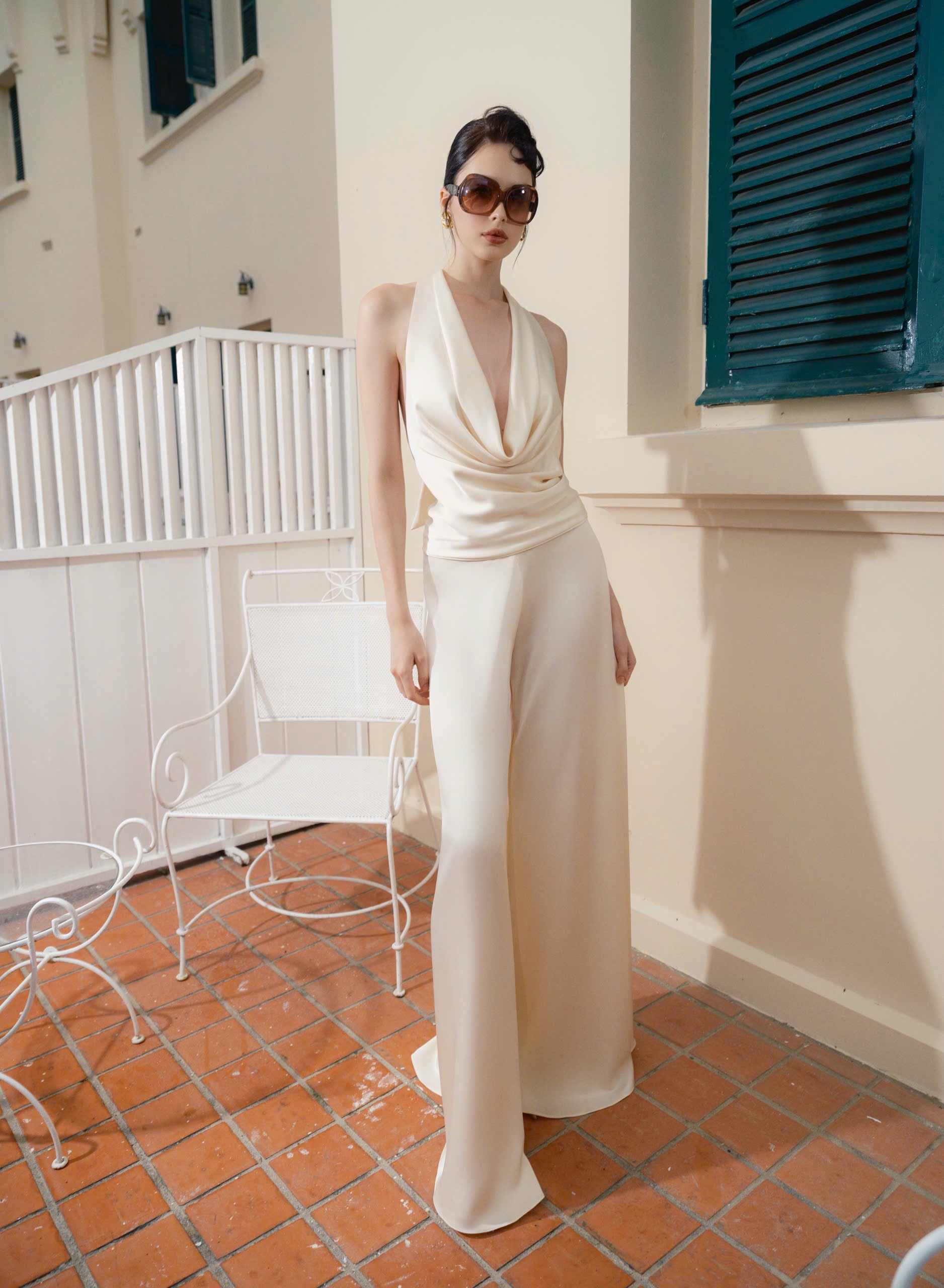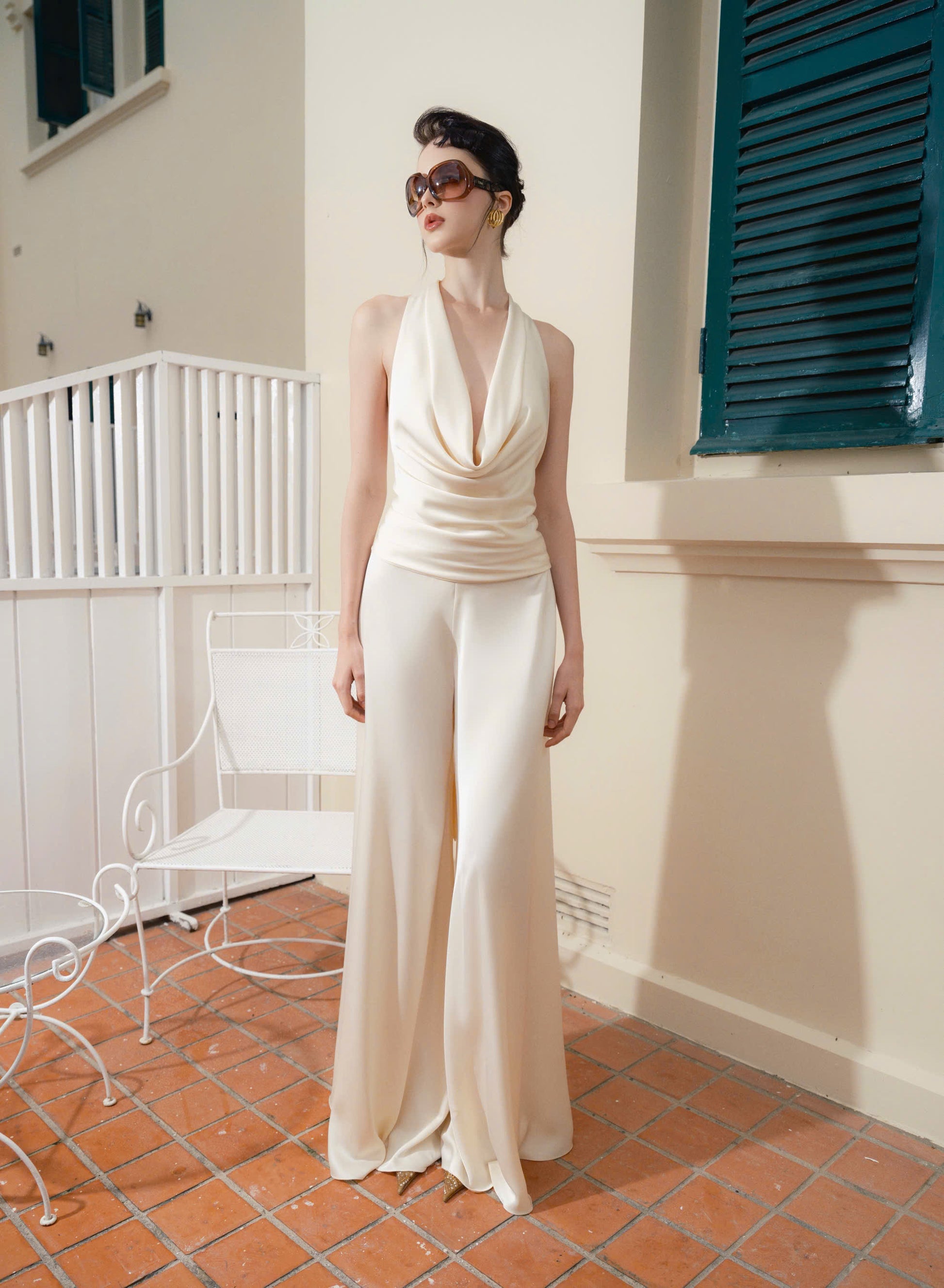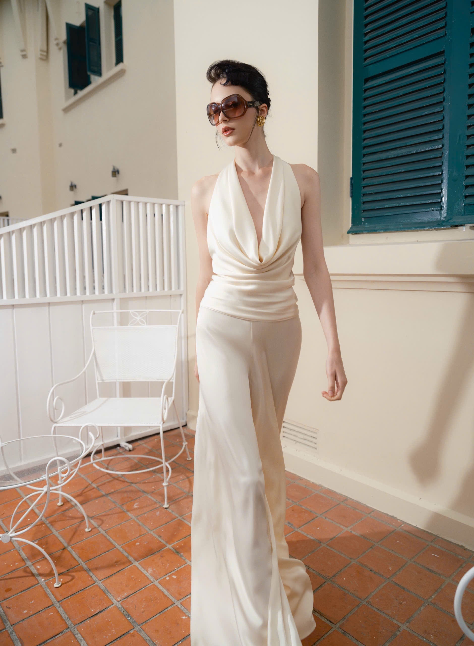 The softness of silk meets the ease of relaxed tailoring. The graceful cowl neckline adds a touch of sensual elegance, while the adjustable back straps allow for multiple styling options — from timelessly feminine to effortlessly modern.