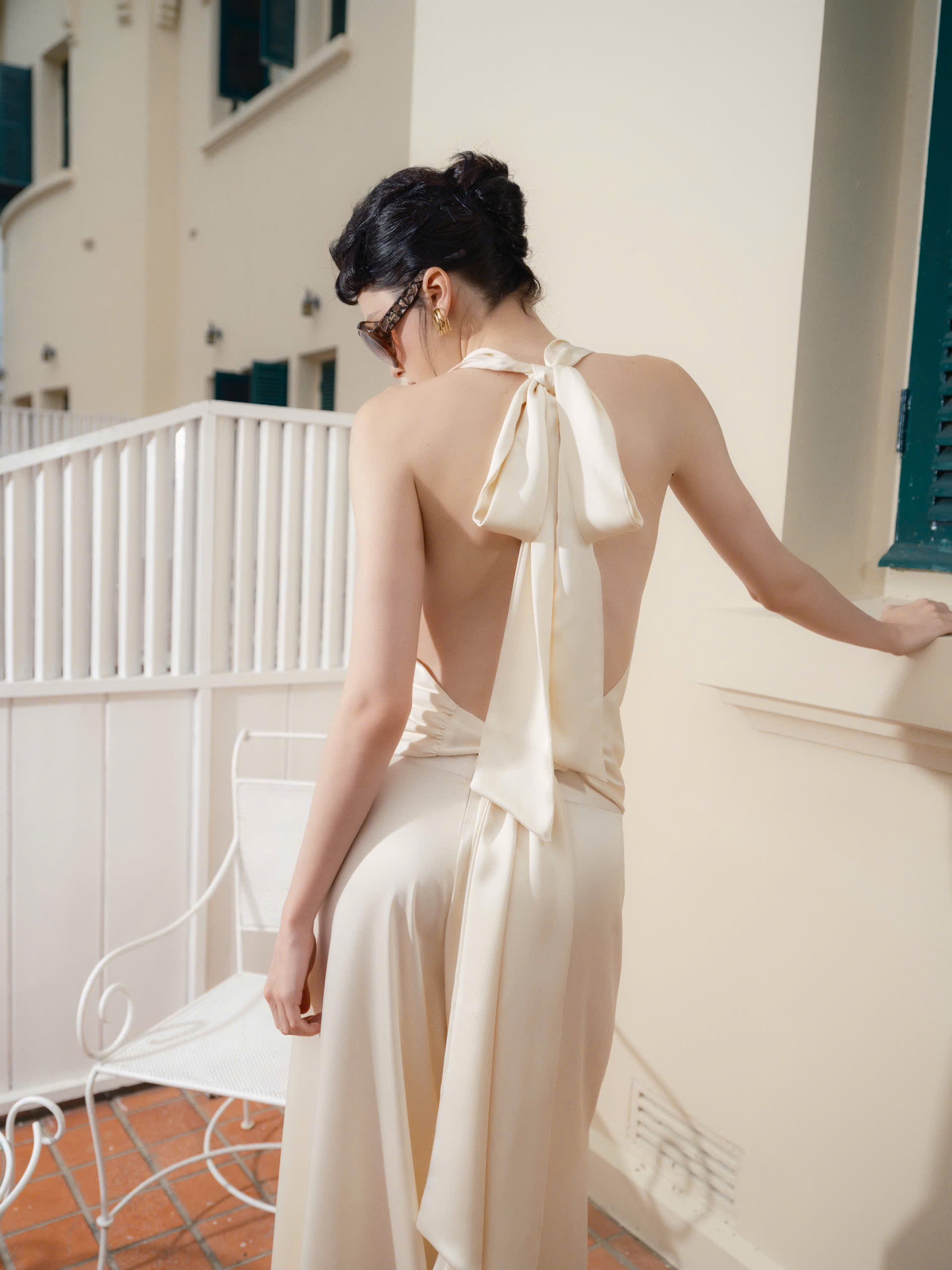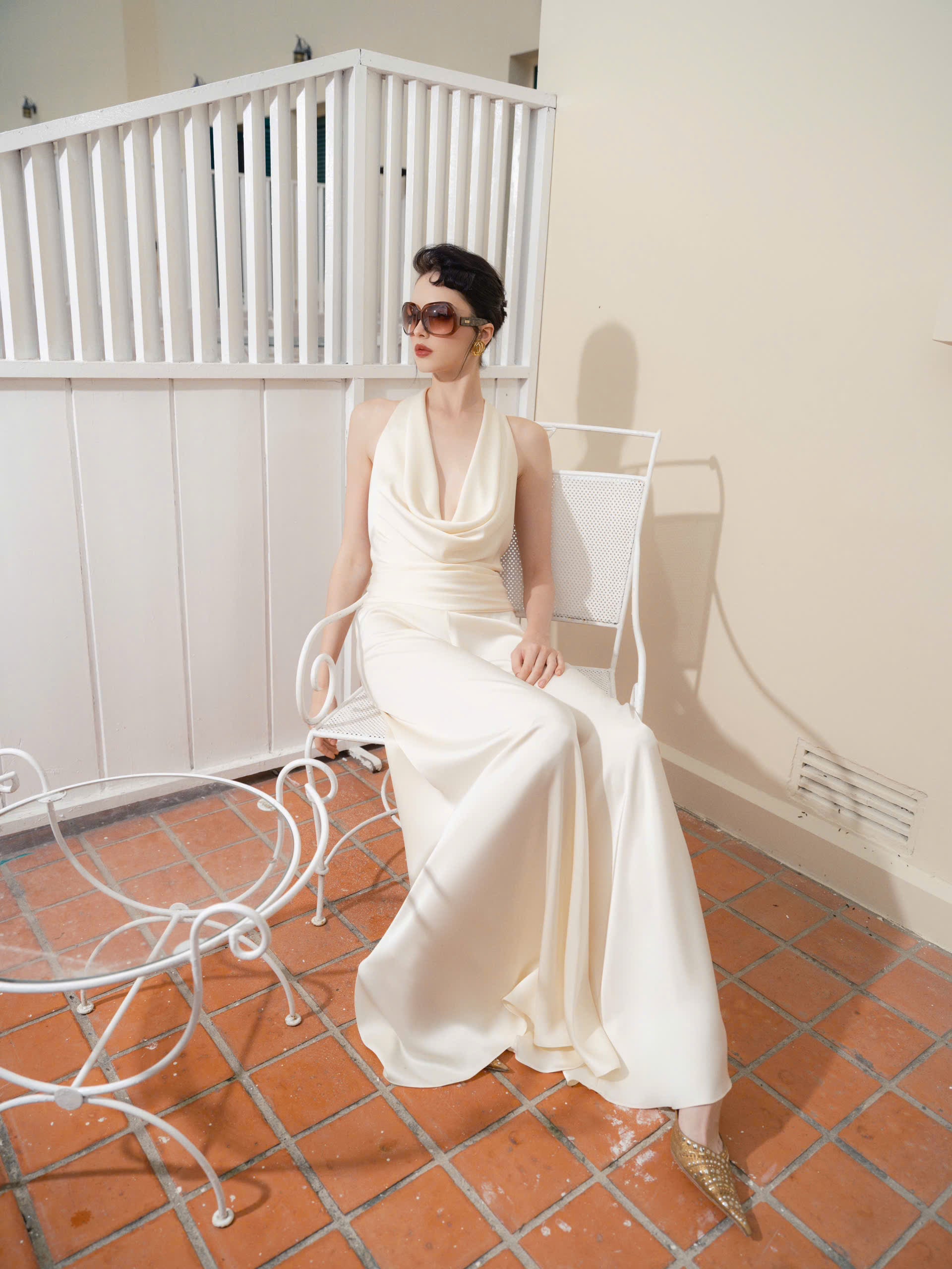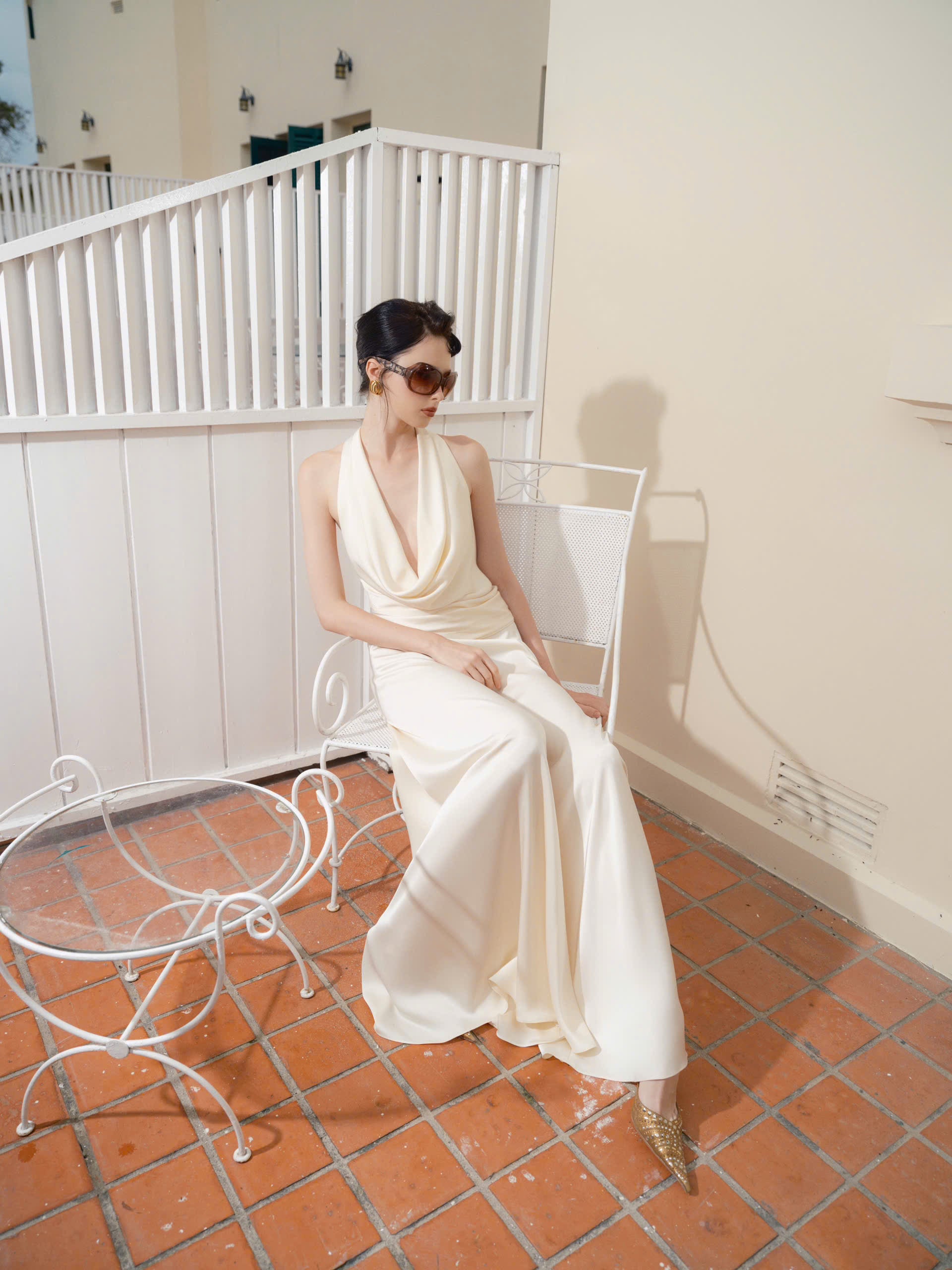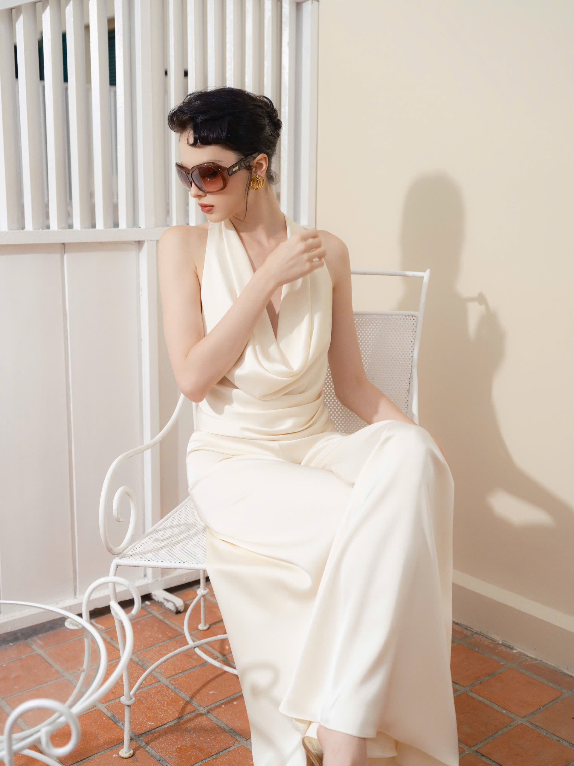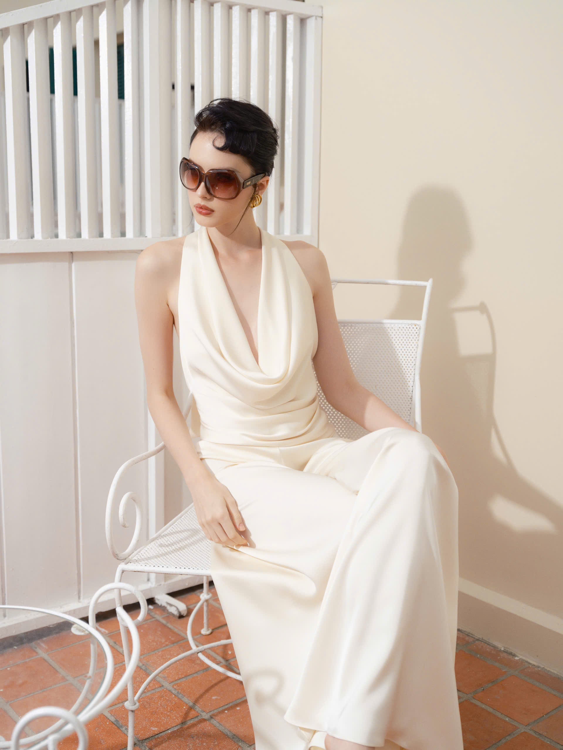 The softness of silk meets the ease of relaxed tailoring. The graceful cowl neckline adds a touch of sensual elegance, while the adjustable back straps allow for multiple styling options — from timelessly feminine to effortlessly modern.