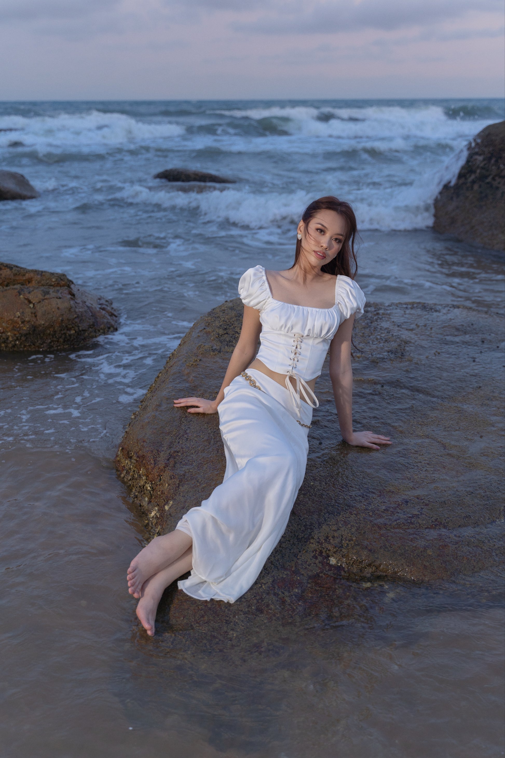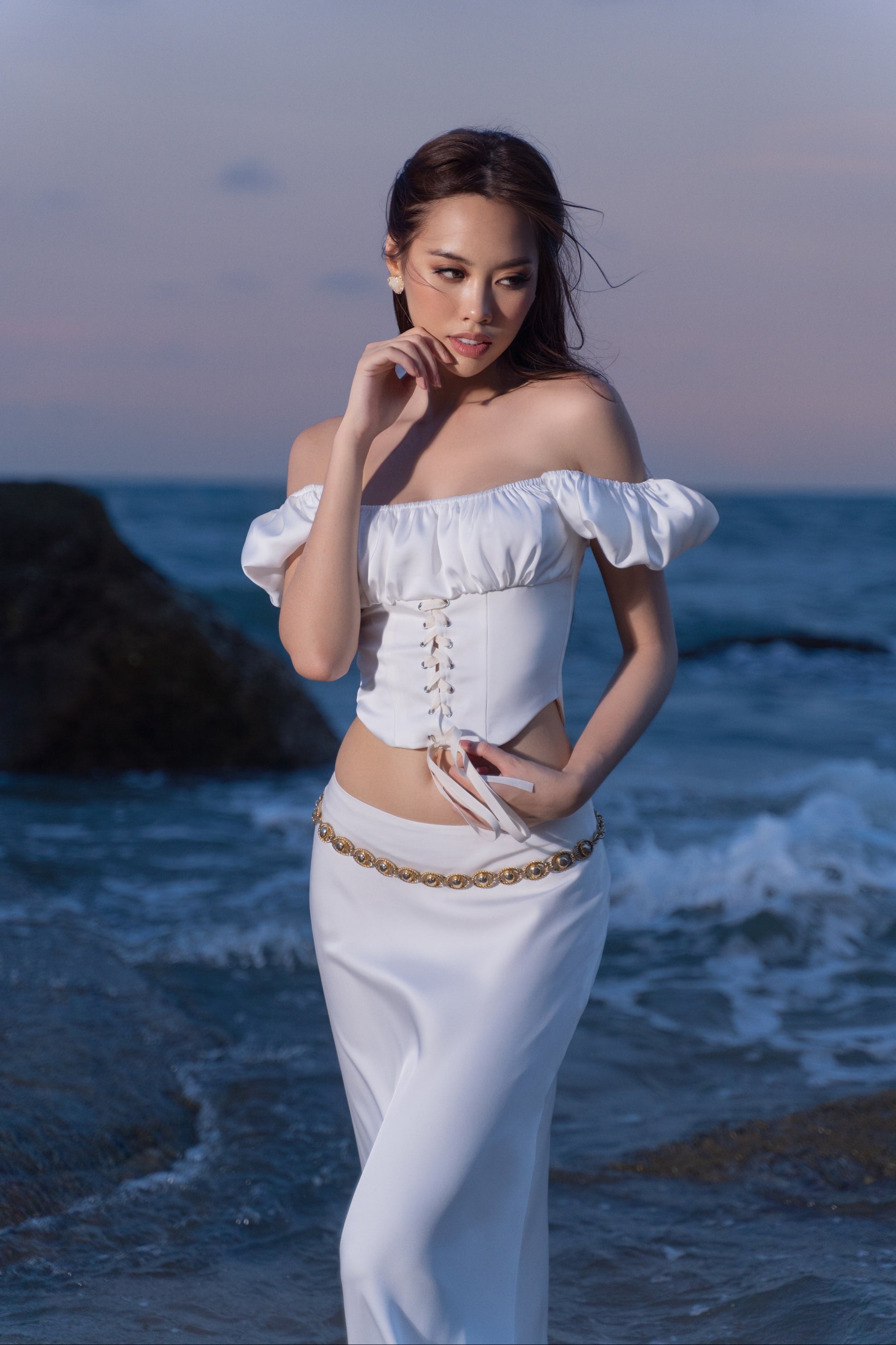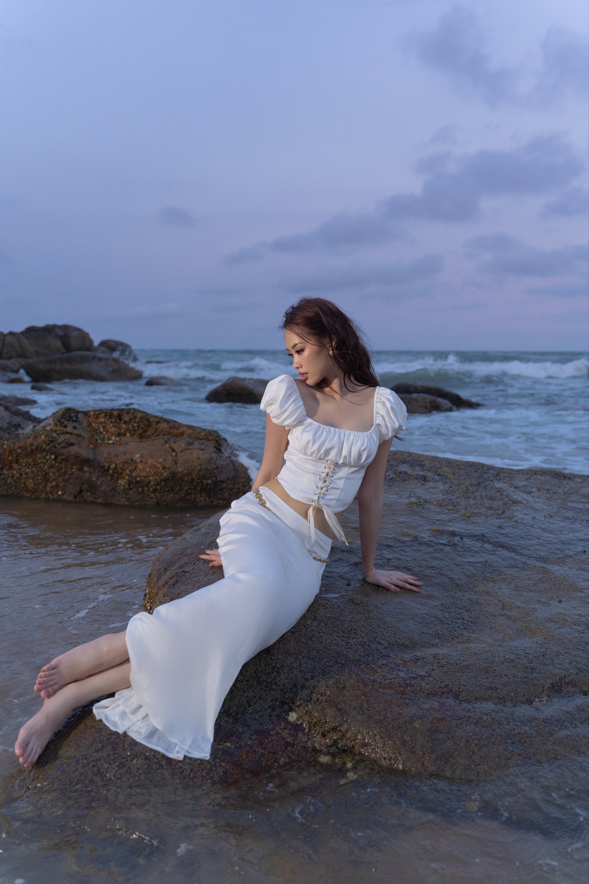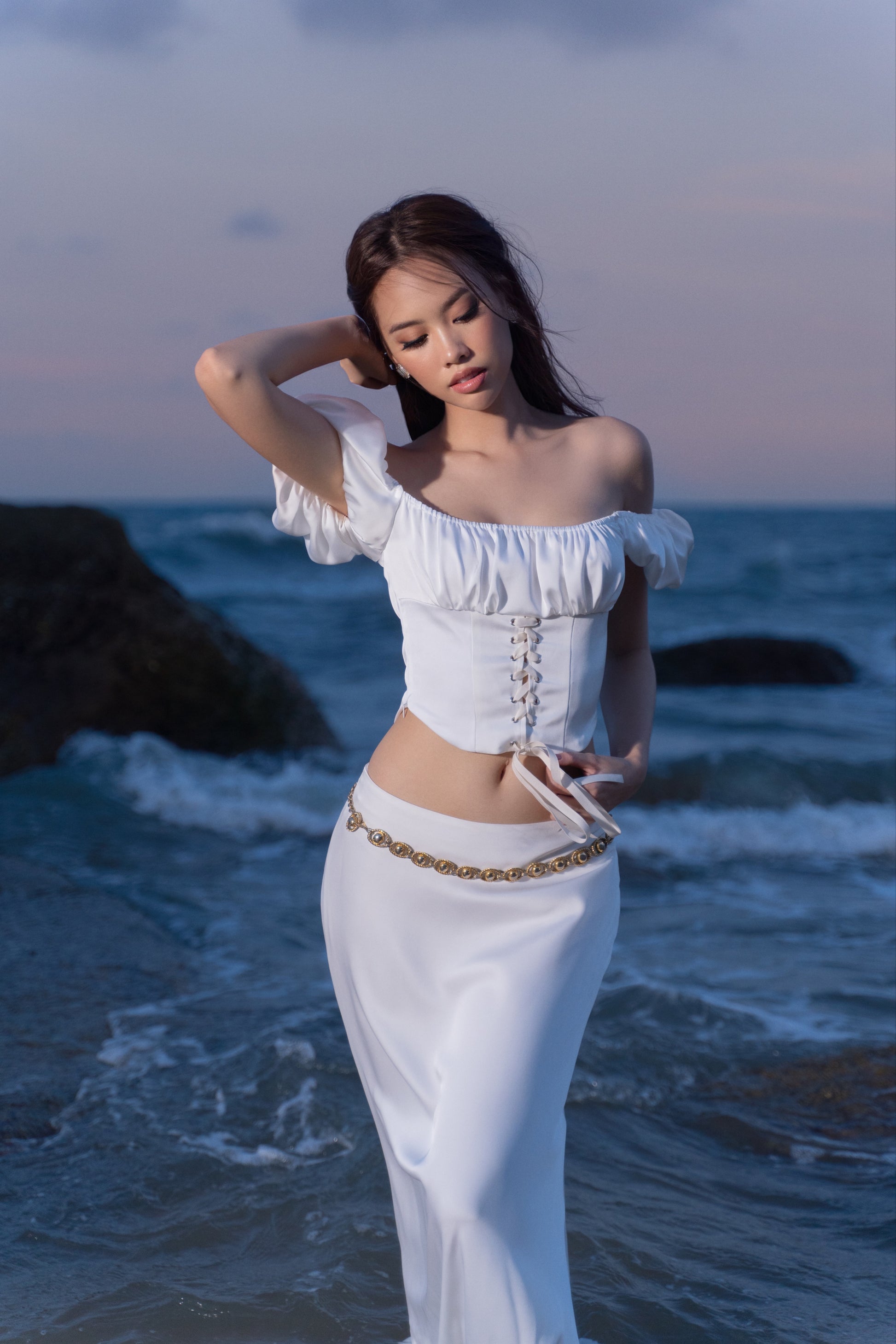 Thiết kế áo đáng yêu với phần tay bồng con sứa, nút xỏ dây ruy băng và phần cúp ngực quyến rũ, dễ dàng kết hợp cùng nhiều kiểu trang phục, có tính ứng dụng cao, phù hợp cho trong những chuyến du ngoạn.