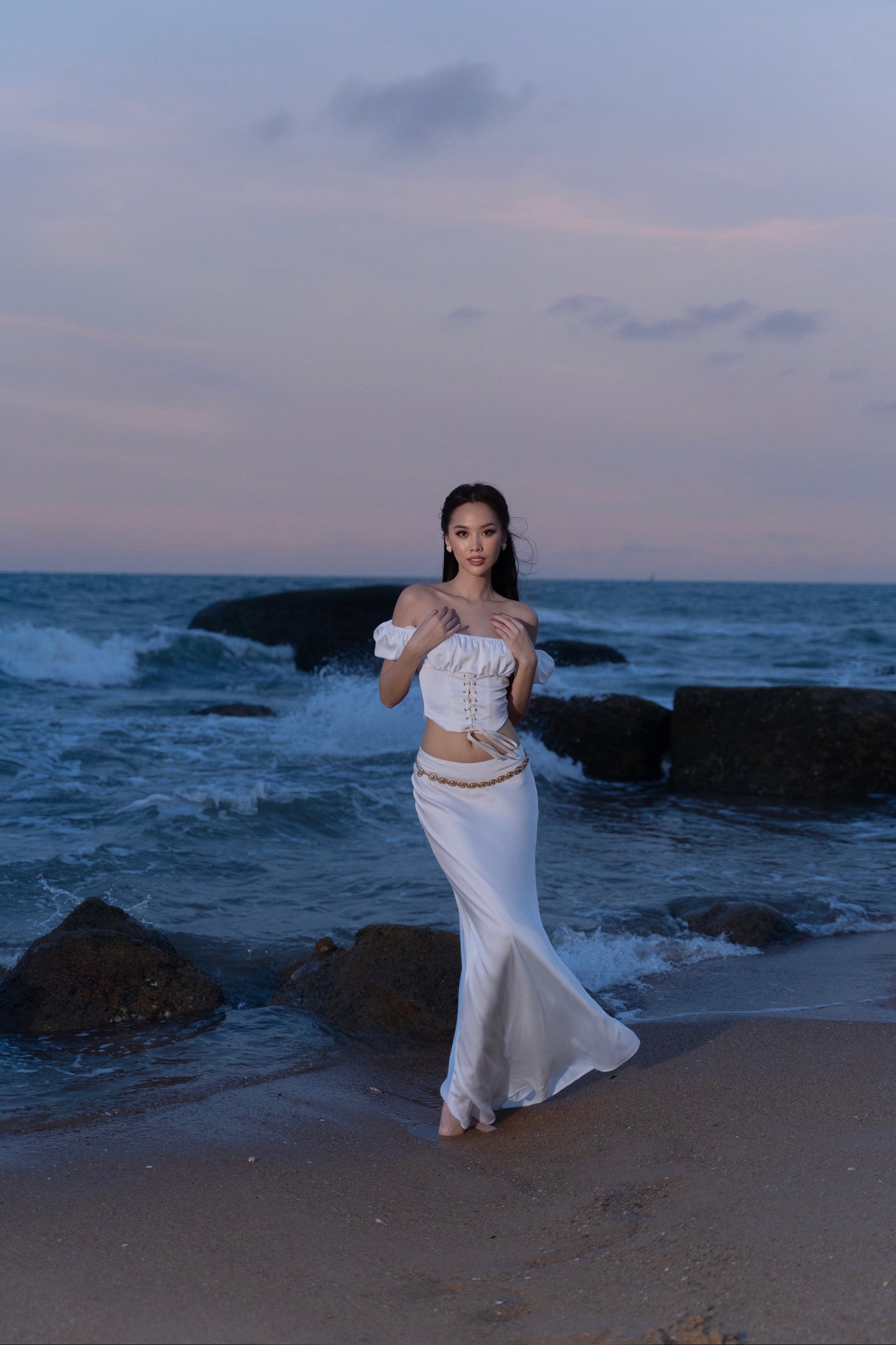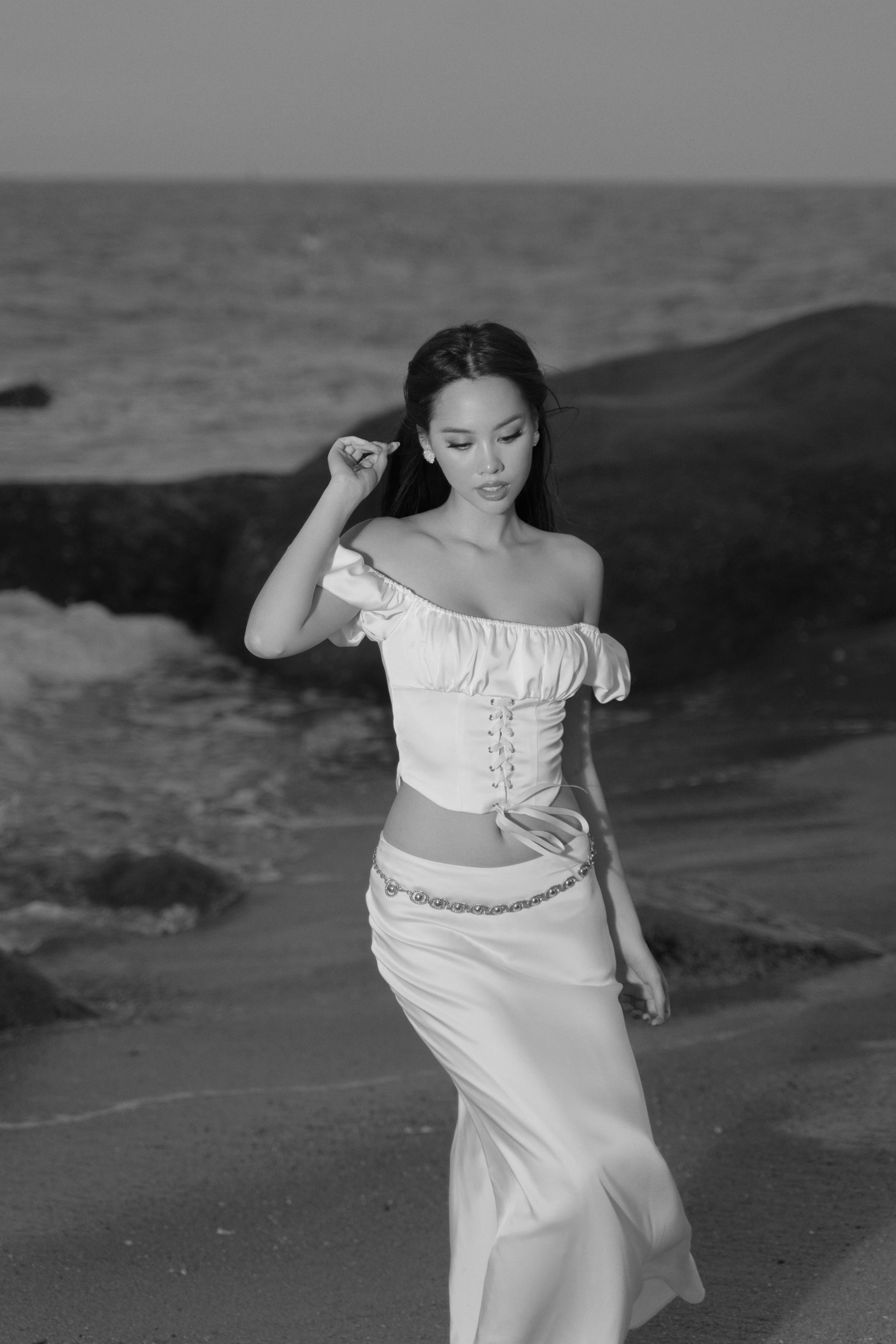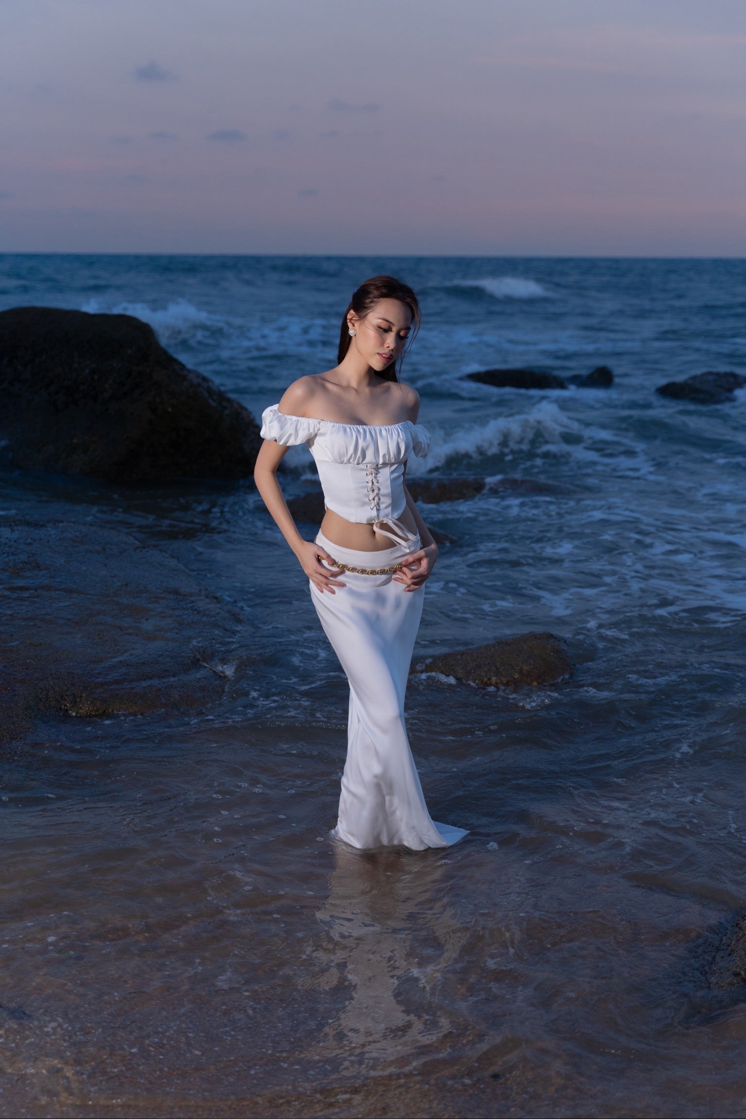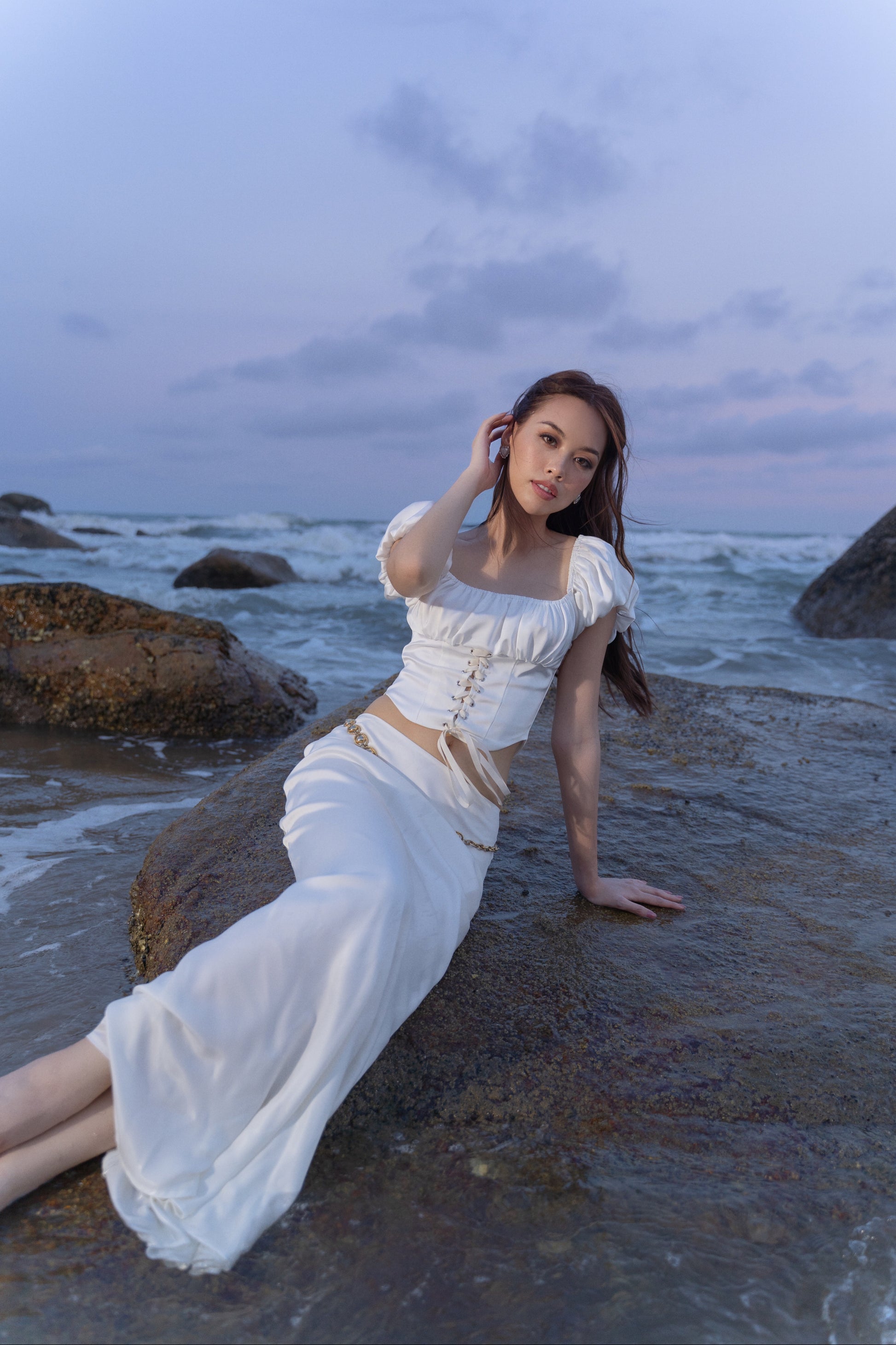 Thiết kế áo đáng yêu với phần tay bồng con sứa, nút xỏ dây ruy băng và phần cúp ngực quyến rũ, dễ dàng kết hợp cùng nhiều kiểu trang phục, có tính ứng dụng cao, phù hợp cho trong những chuyến du ngoạn.