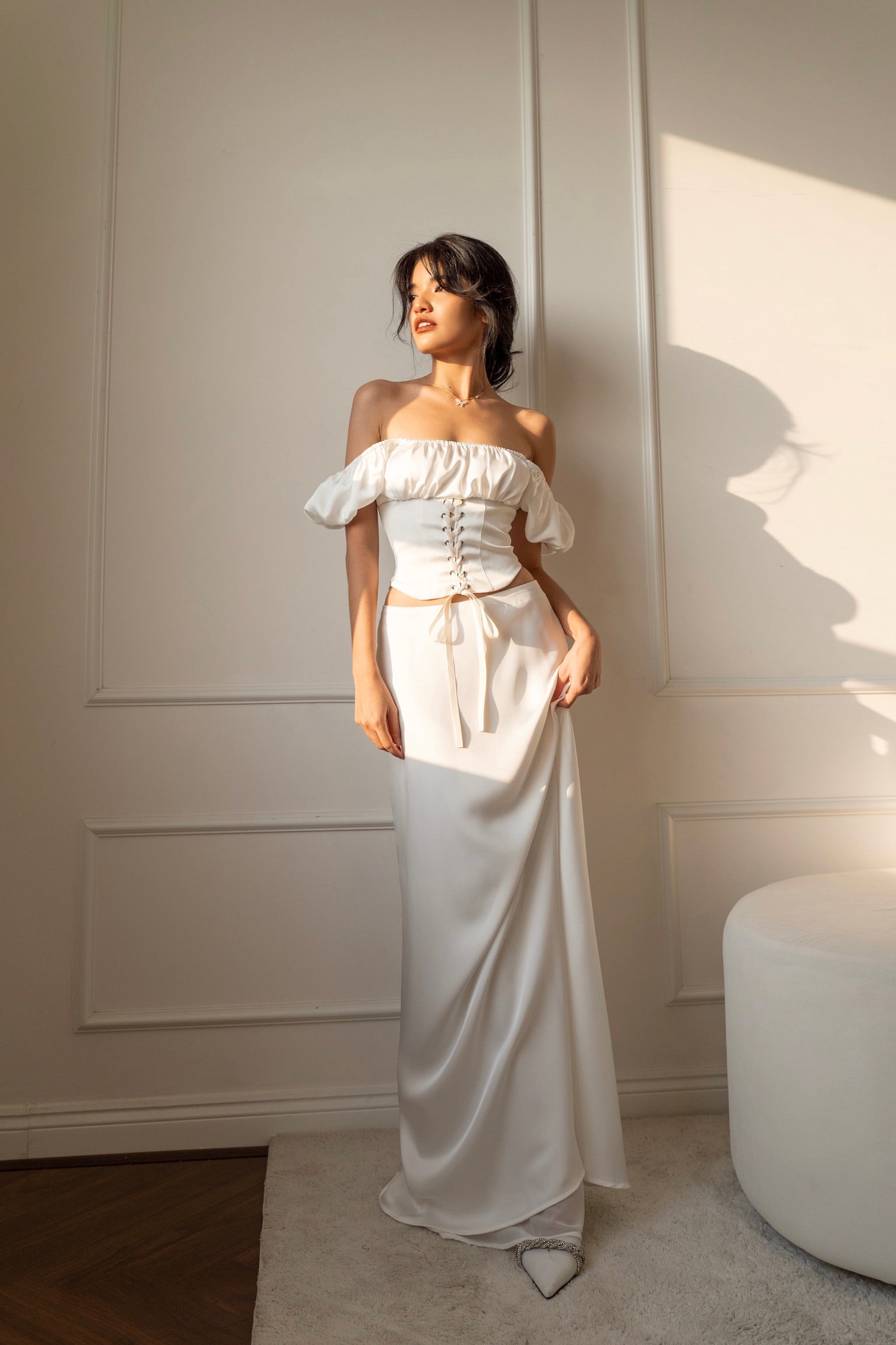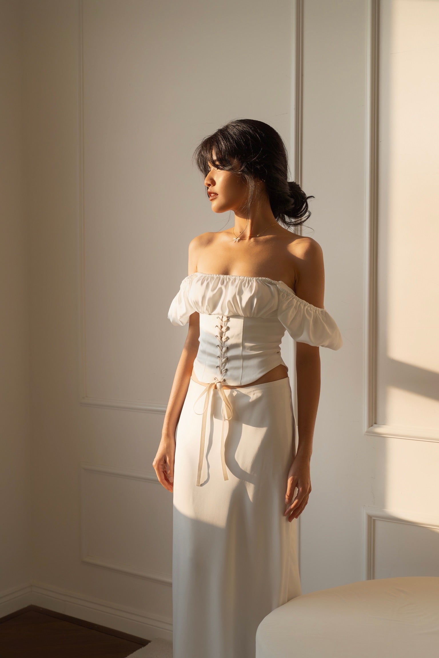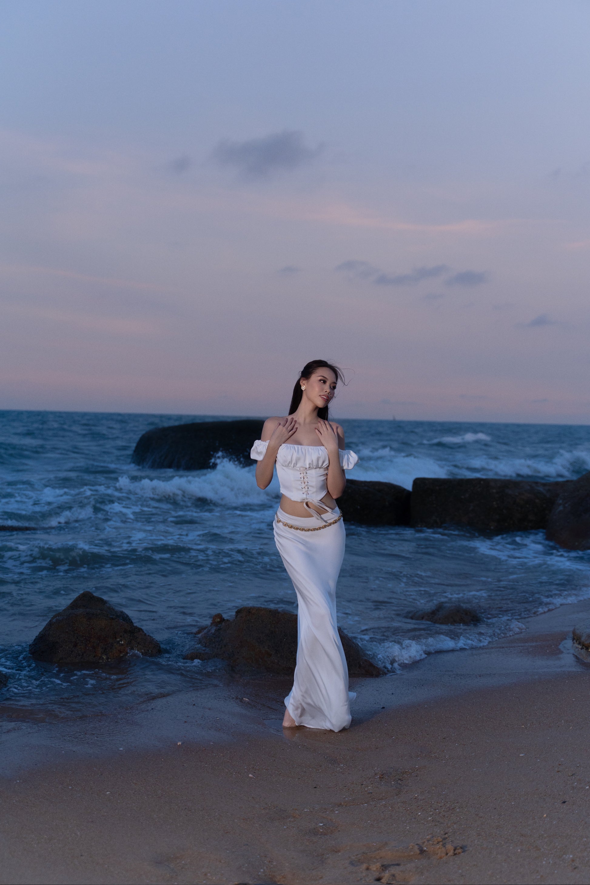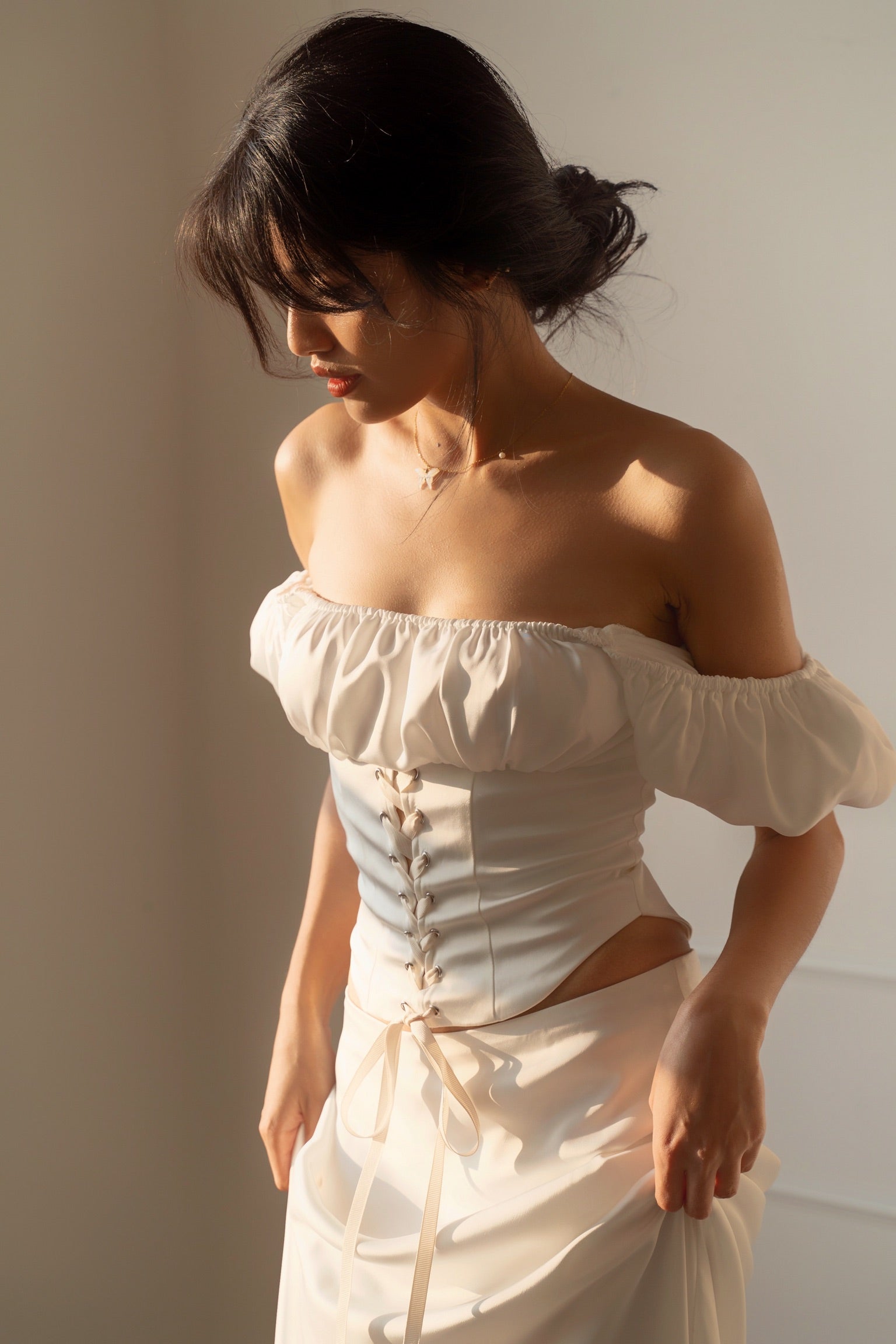 Thiết kế áo đáng yêu với phần tay bồng con sứa, nút xỏ dây ruy băng và phần cúp ngực quyến rũ, dễ dàng kết hợp cùng nhiều kiểu trang phục, có tính ứng dụng cao, phù hợp cho trong những chuyến du ngoạn.