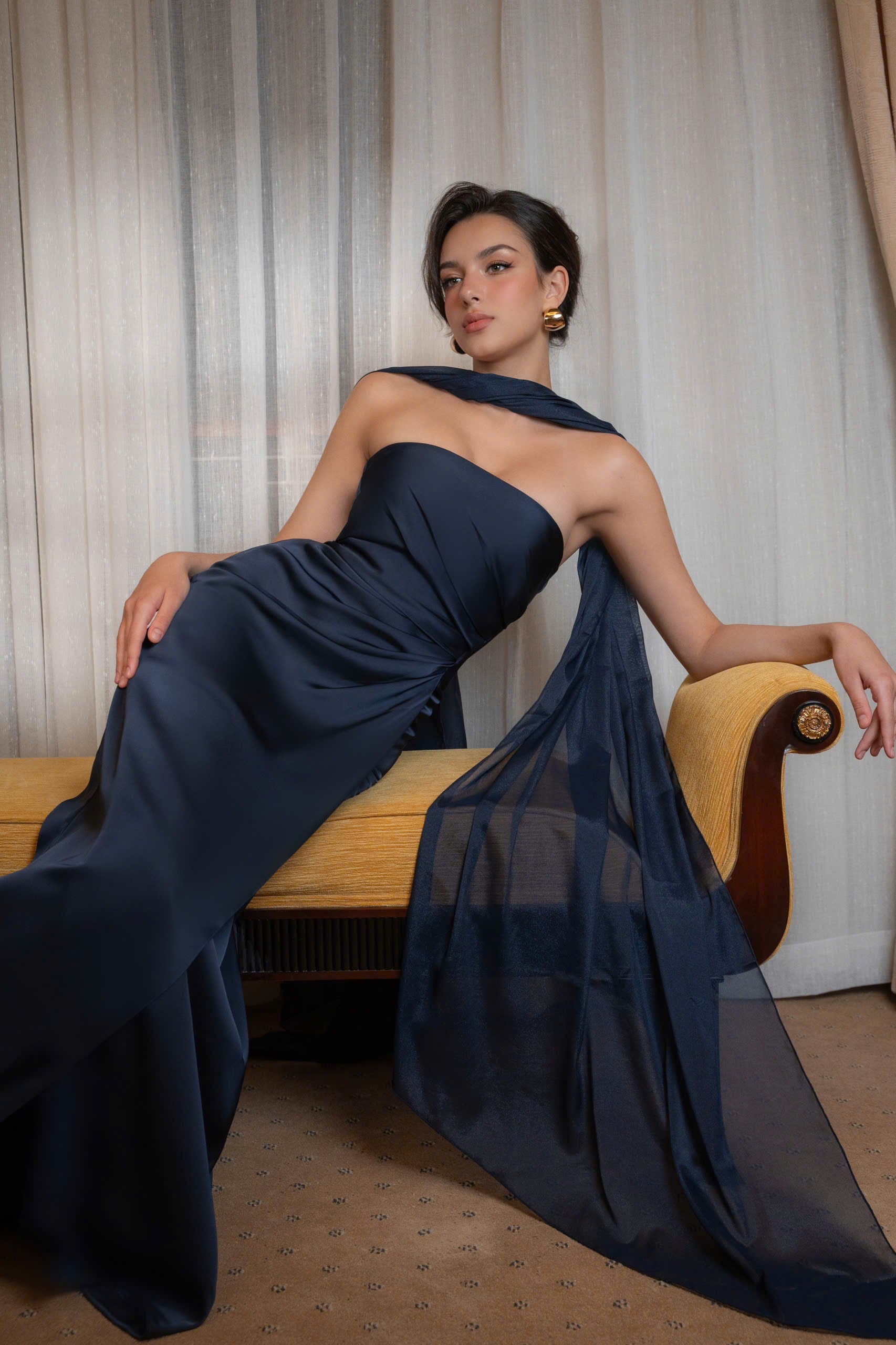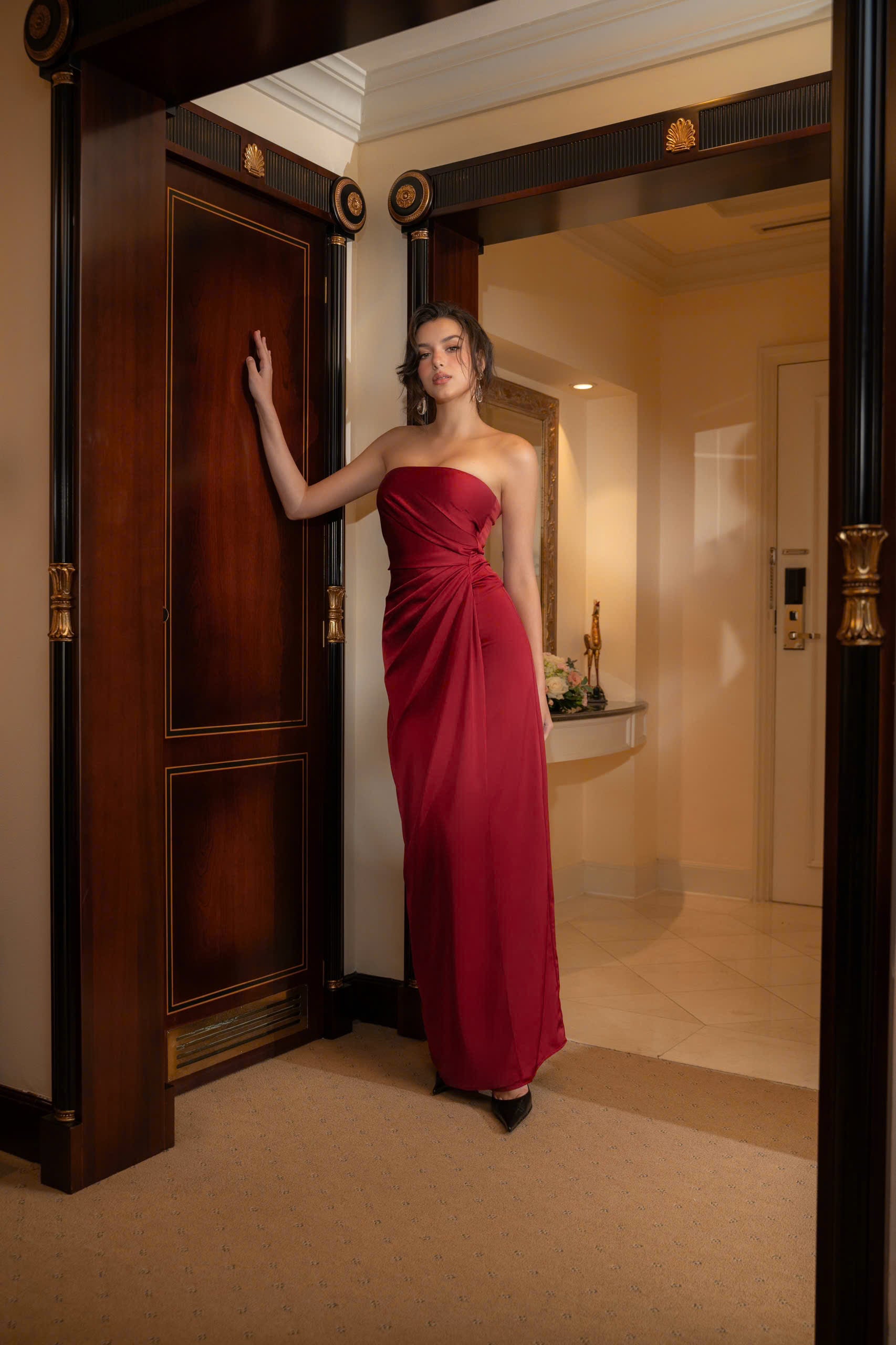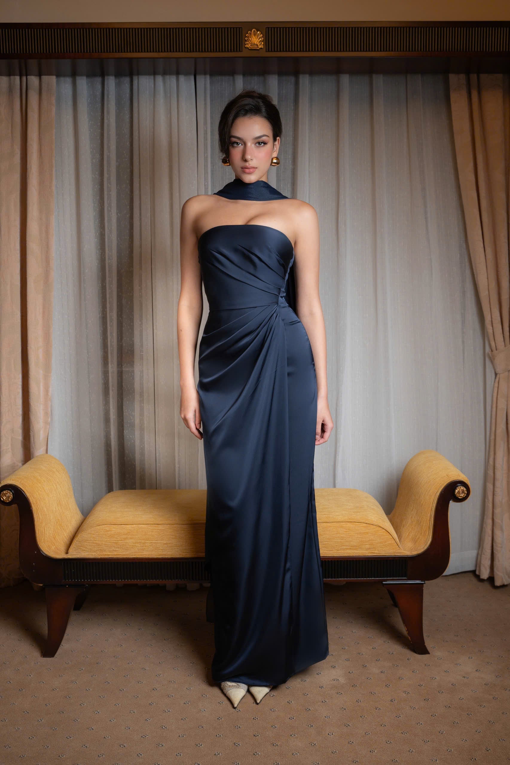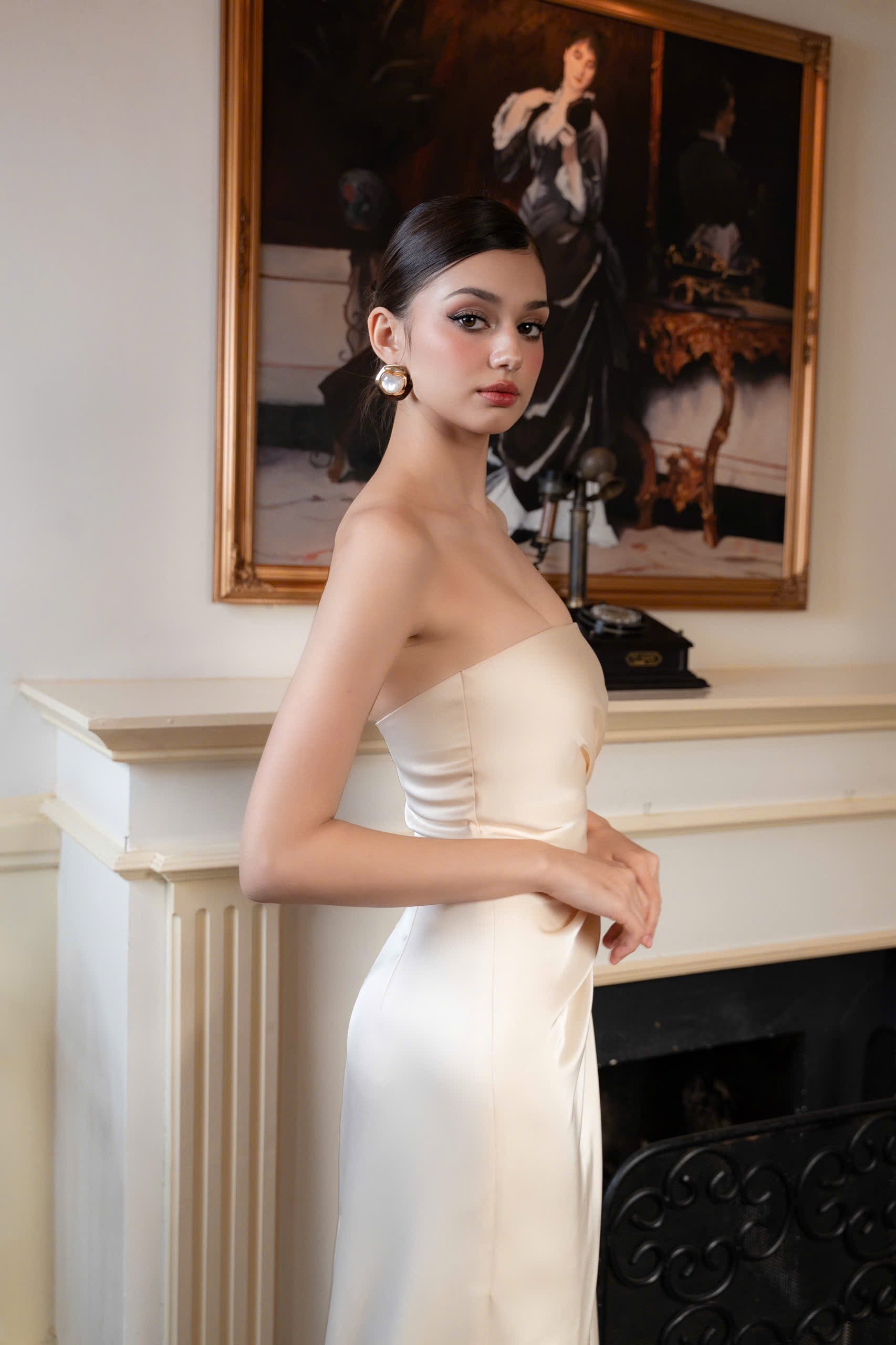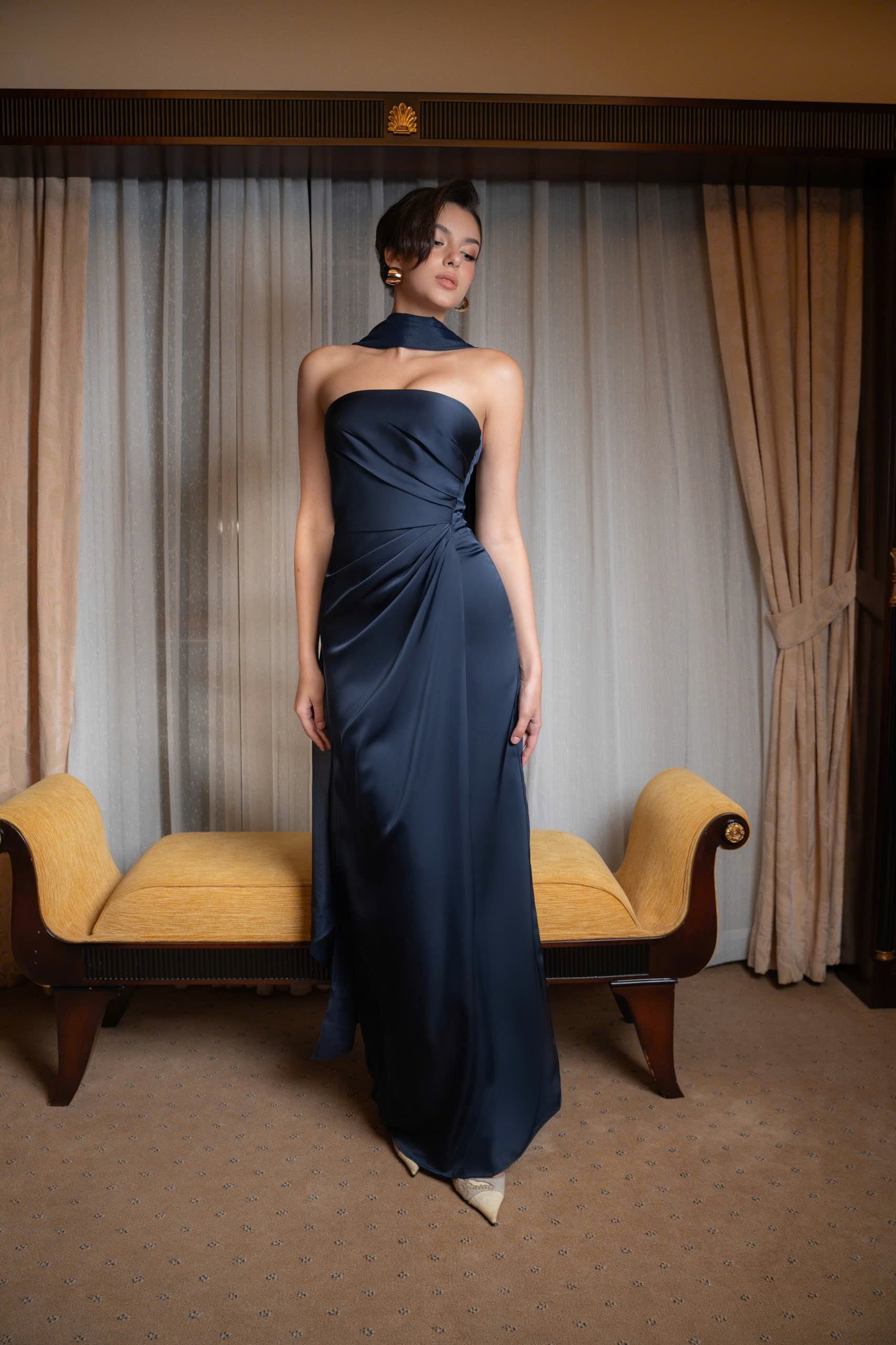 An extremely flattering and seductive dress, are the words that the Kisserine design team had to exclaim when fitting the dress with the model for the first time. The characteristics of silk are very soft and slippery, so the pleated details on the silk background have been meticulously draping by skilled craftsmen for each dress before reaching the hands of Kisserine’s muses. Discover the 4 colors: creamy white, navy blue, sangre red and light beige of Jenny’s design!