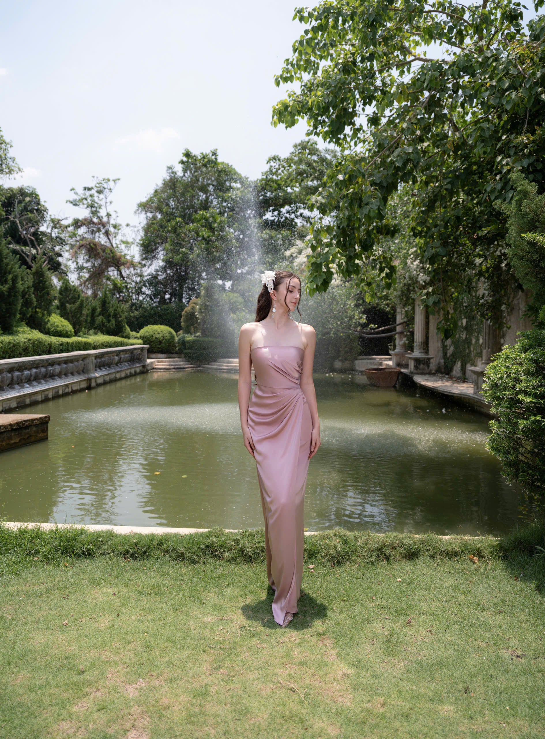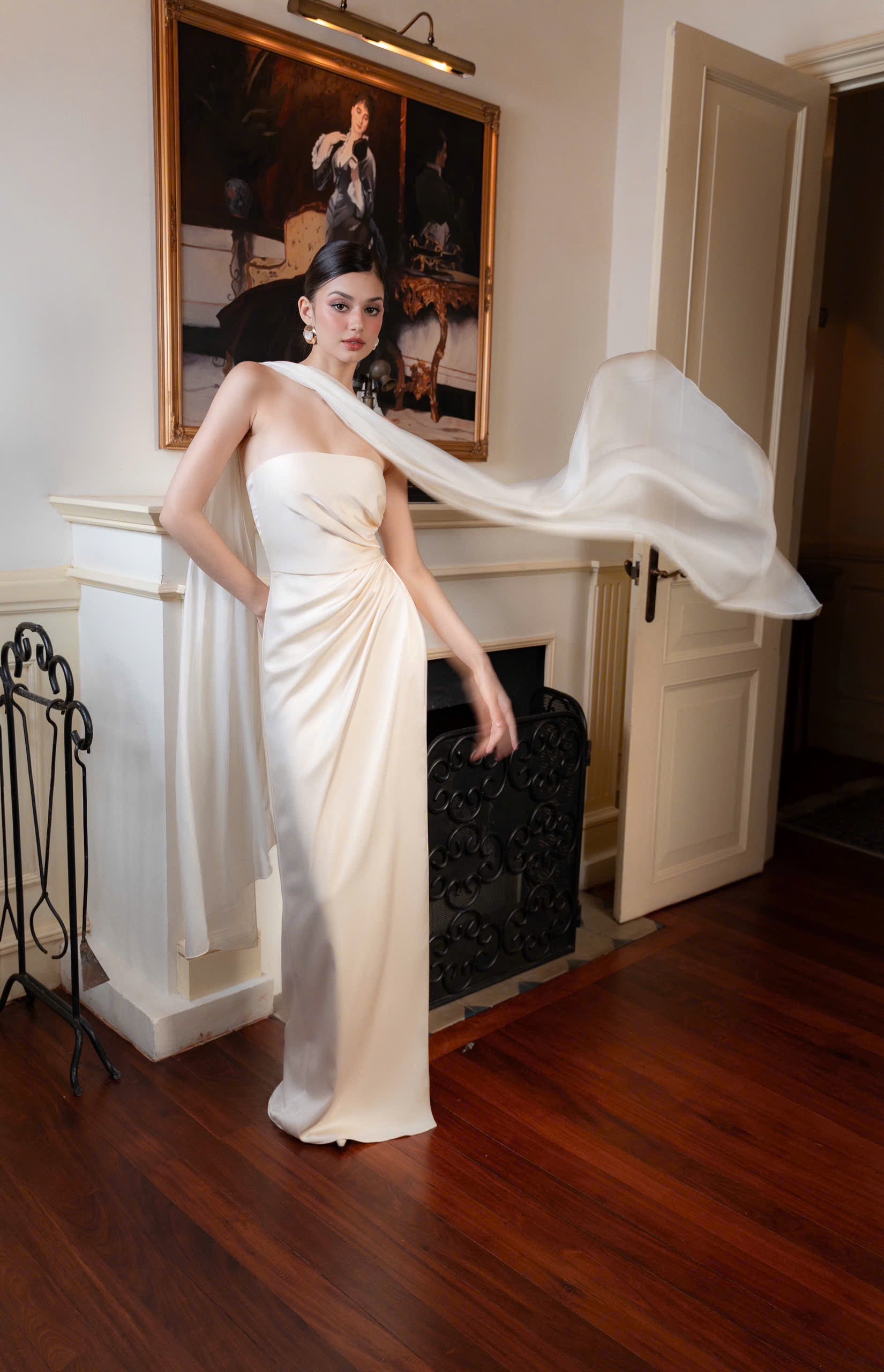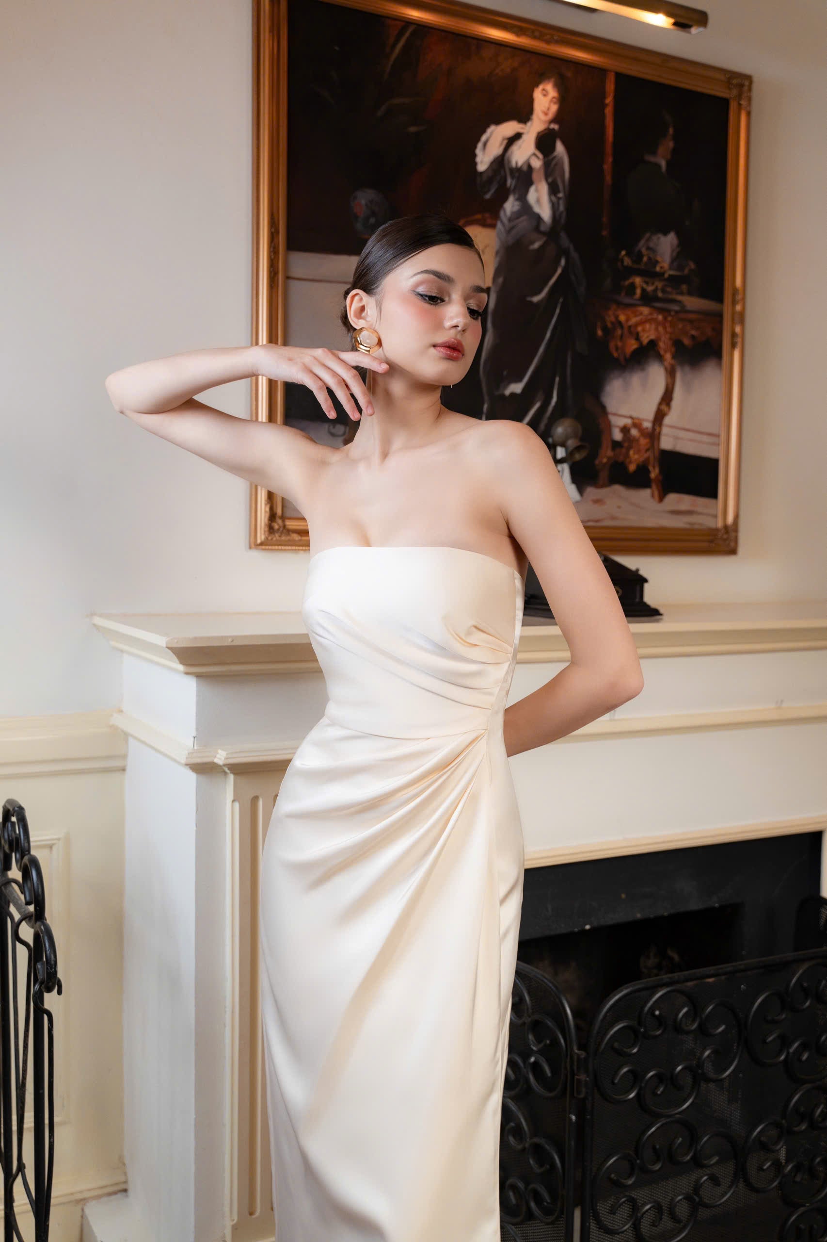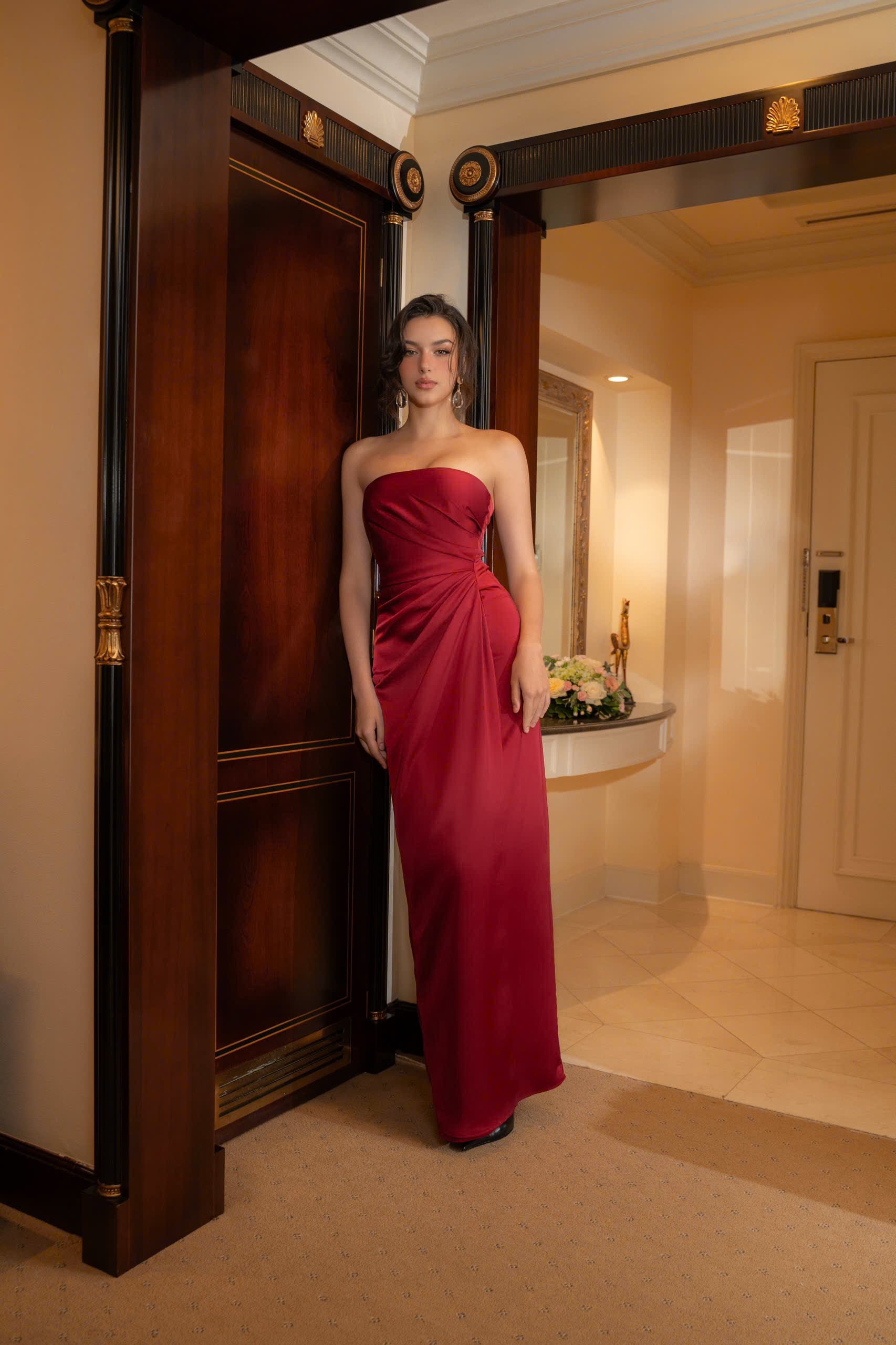 An extremely flattering and seductive dress, are the words that the Kisserine design team had to exclaim when fitting the dress with the model for the first time. The characteristics of silk are very soft and slippery, so the pleated details on the silk background have been meticulously draping by skilled craftsmen for each dress before reaching the hands of Kisserine’s muses. Discover the 4 colors: creamy white, navy blue, sangre red and light beige of Jenny’s design!