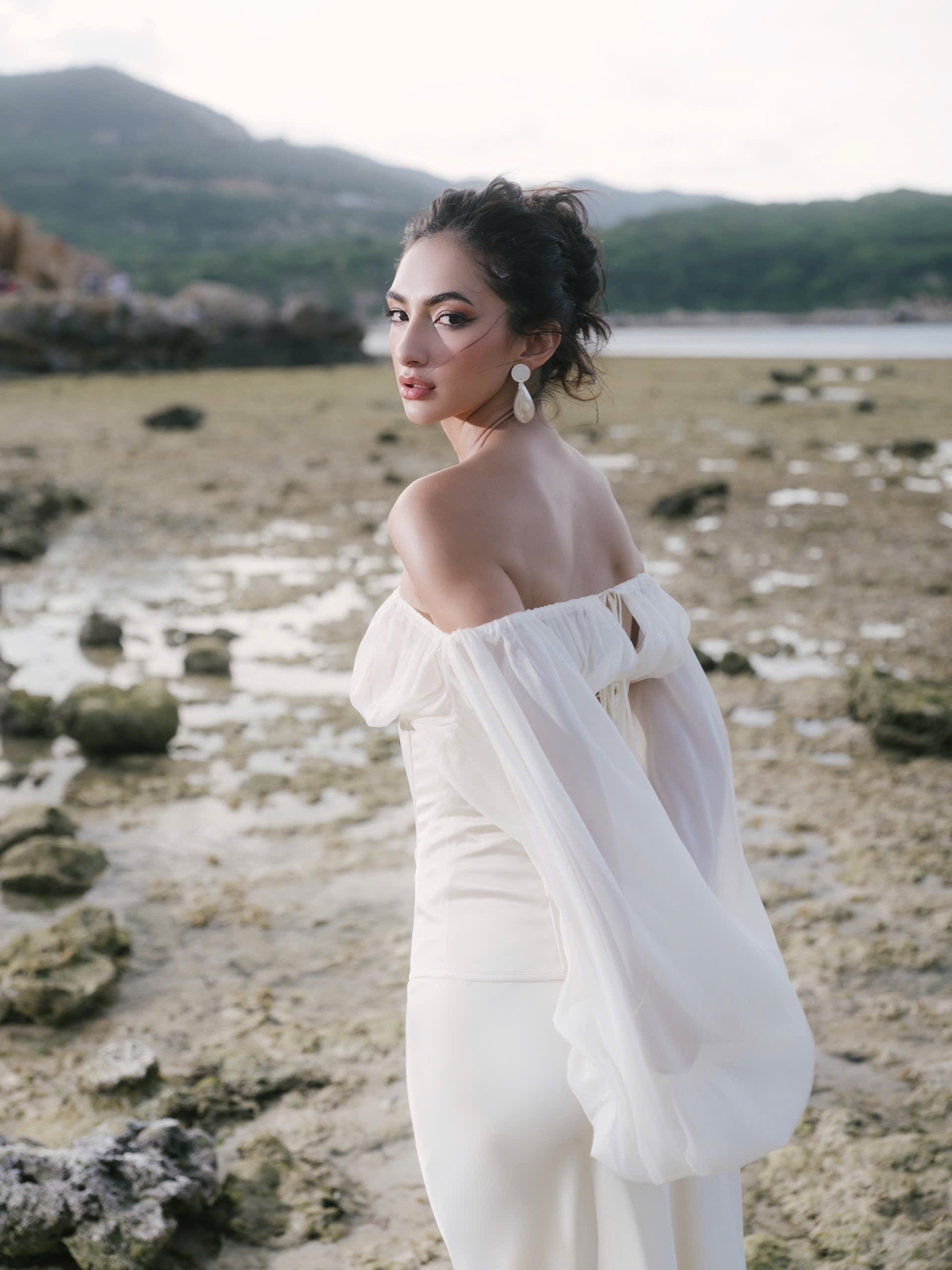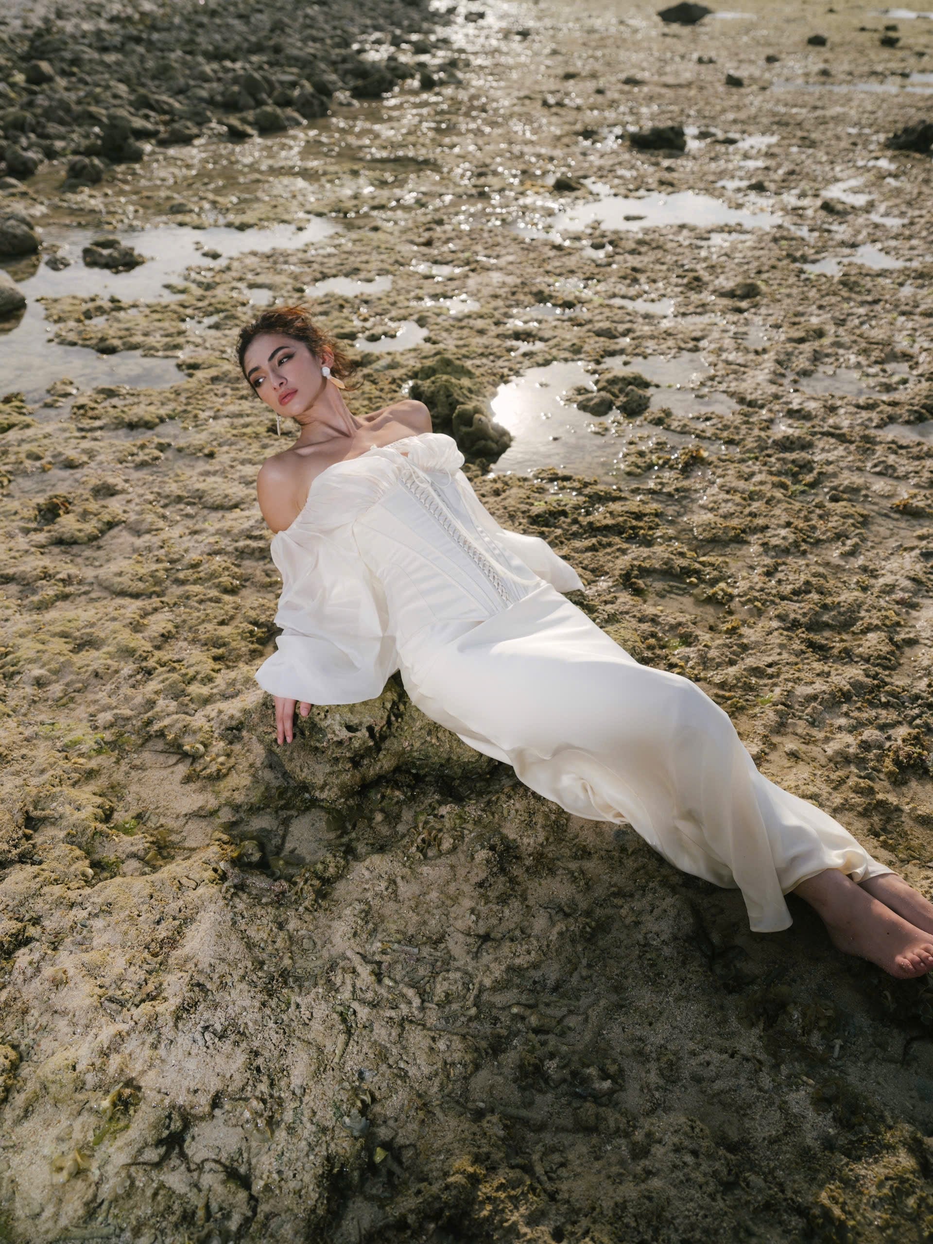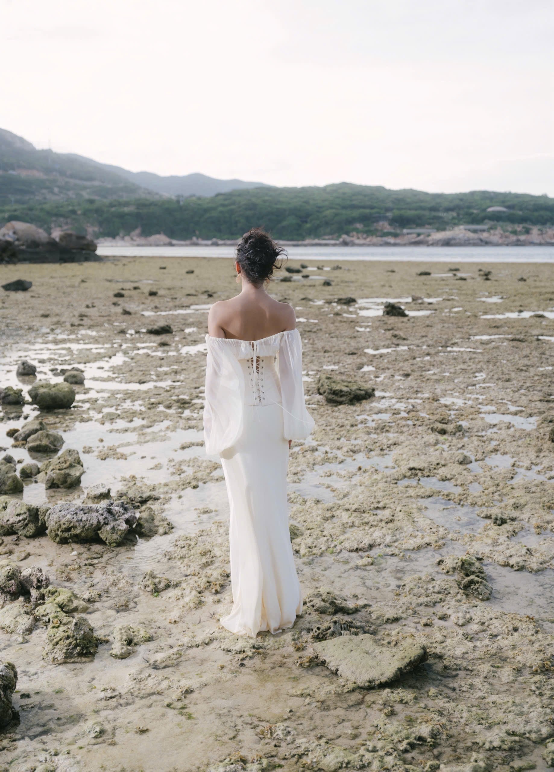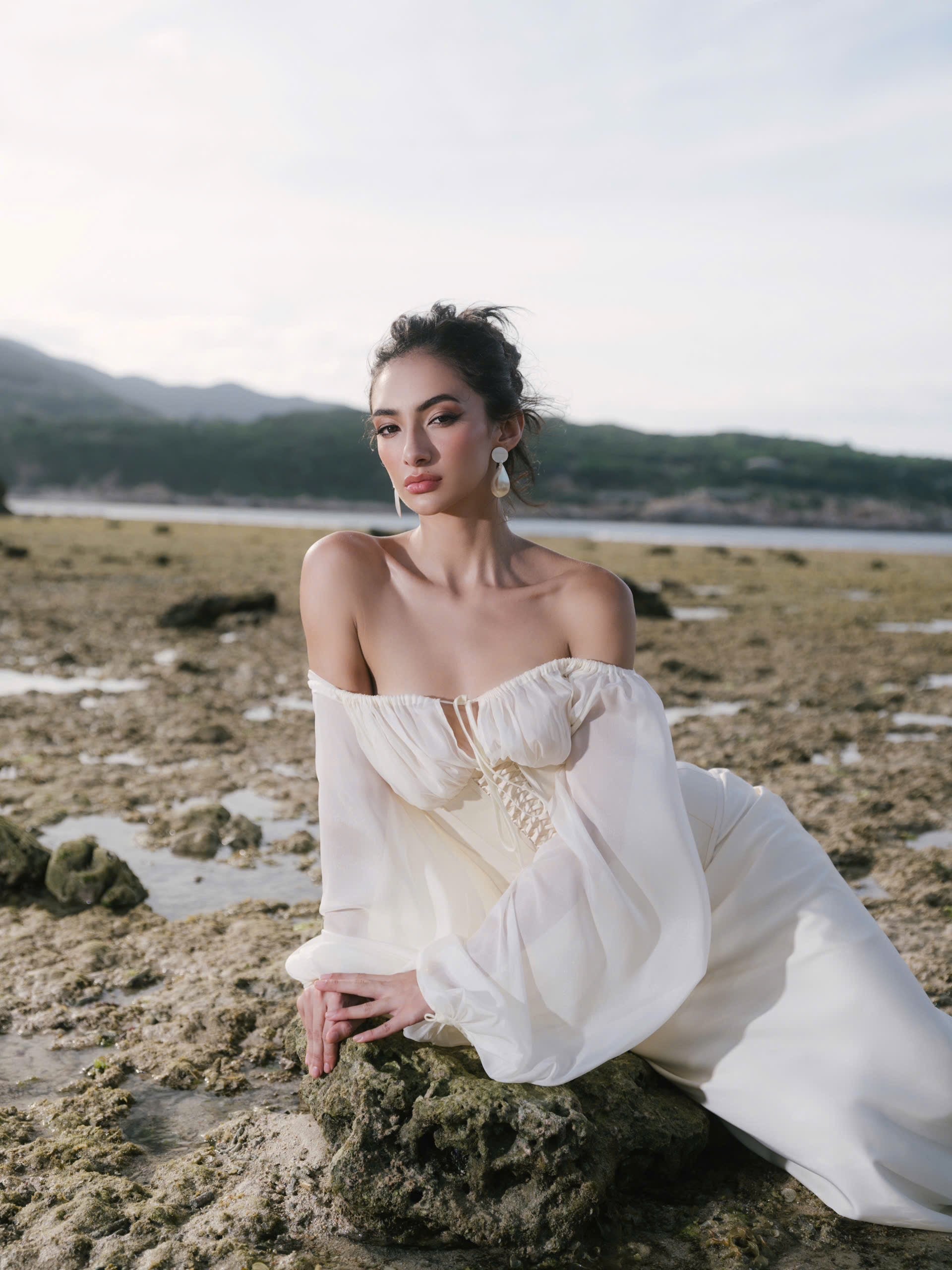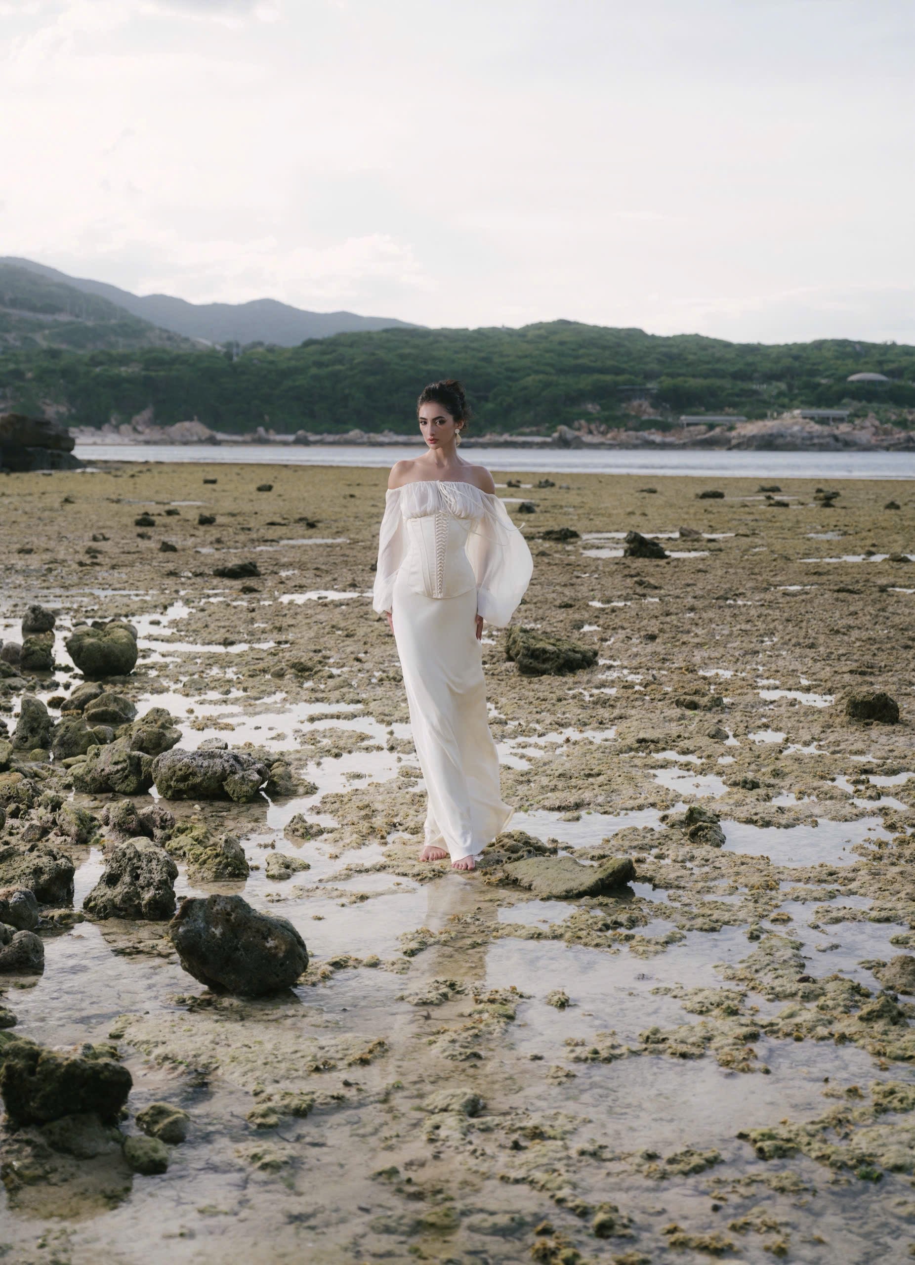 Like a fairytale ballad, the KAIA CORSET. With its structured bodice embracing every curve and dreamy organza sleeves flowing like clouds, this look is a celebration of strength wrapped in softness.