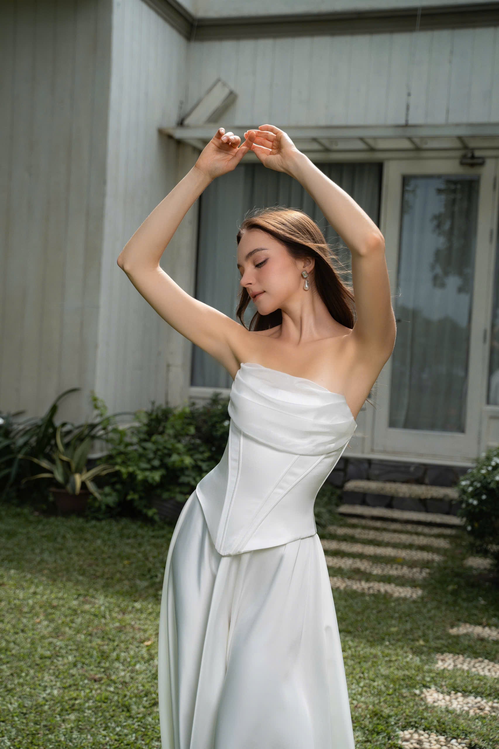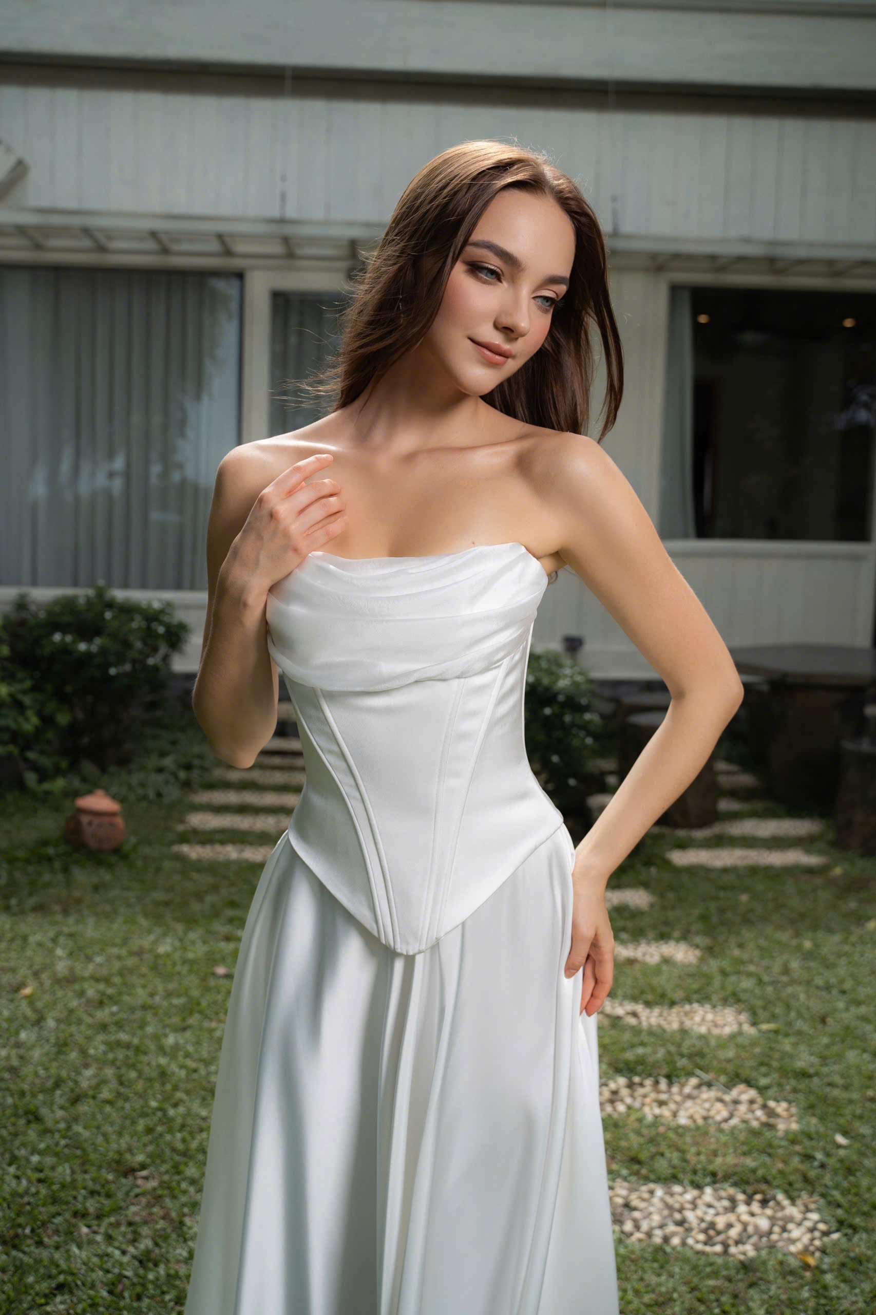Corset KELLY với lớp phủ chiffon là một thiết kế tinh tế và lãng mạn, mang đến sự kết hợp hoàn hảo giữa sự quyến rũ và thanh lịch. Corset được làm từ lụa cao cấp, ôm sát cơ thể để tôn lên vòng eo thon gọn và tạo ra những đường cong hấp dẫn. Việc thêm vào lớp chiffon mềm mại mang đến một cảm giác nhẹ nhàng, huyền bí, làm tăng thêm vẻ duyên dáng cho người mặc.