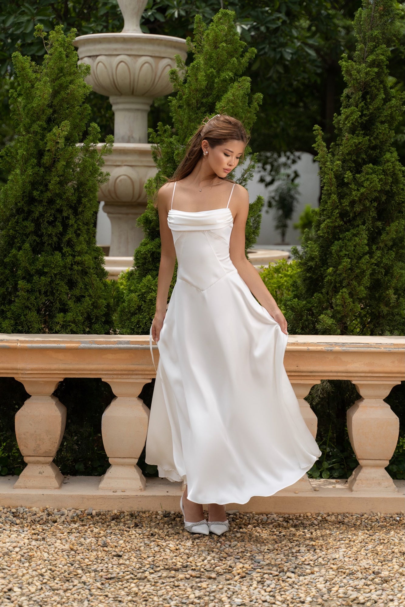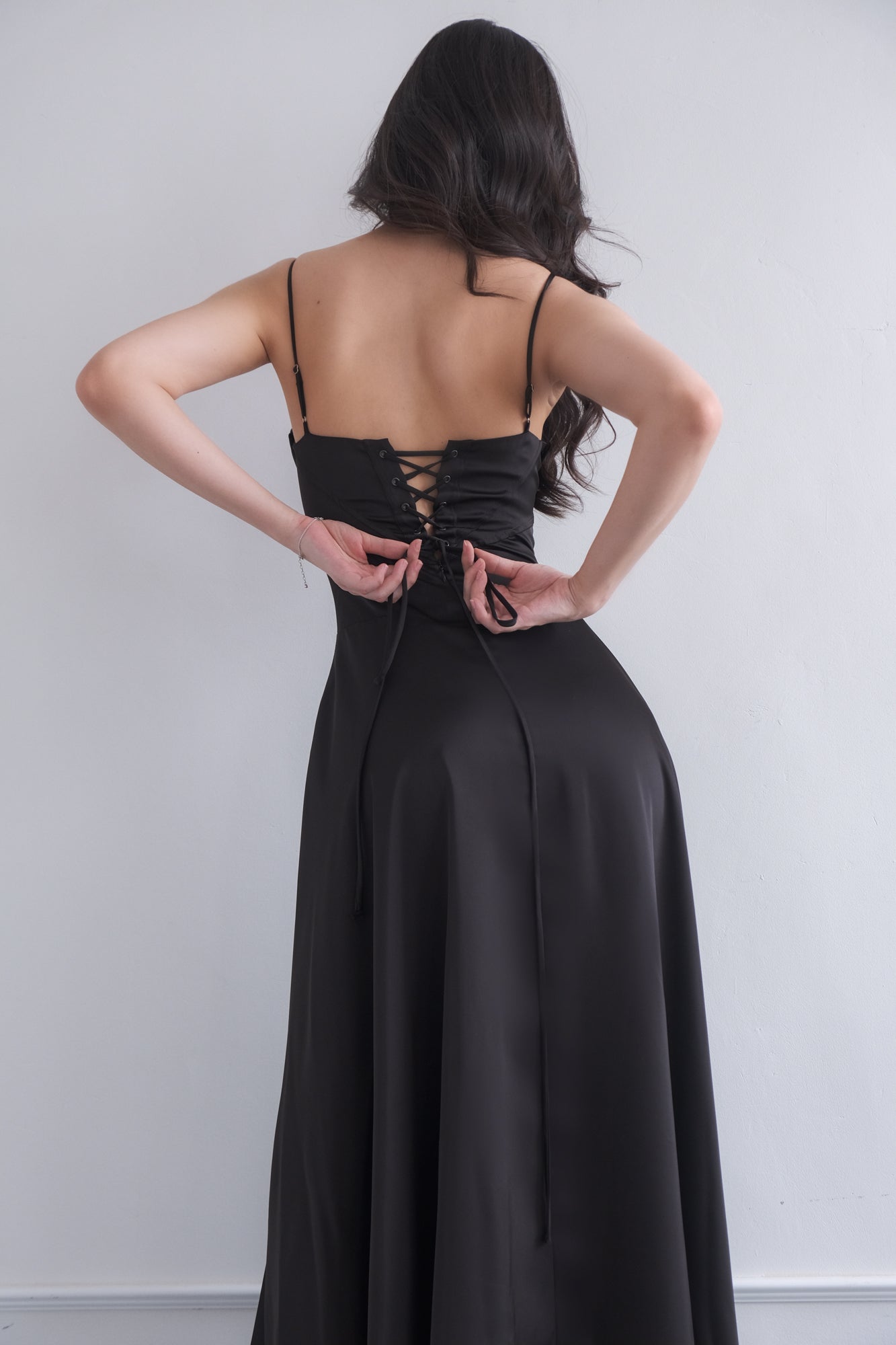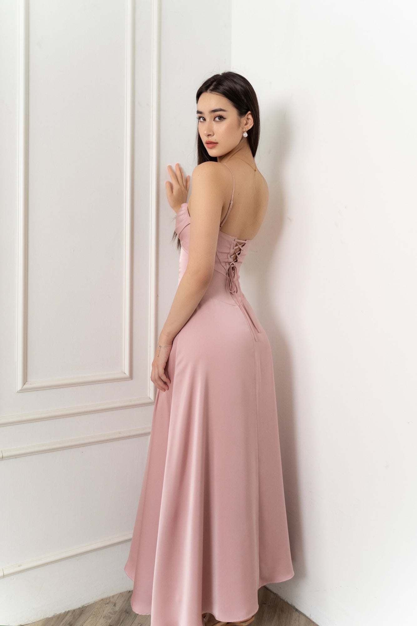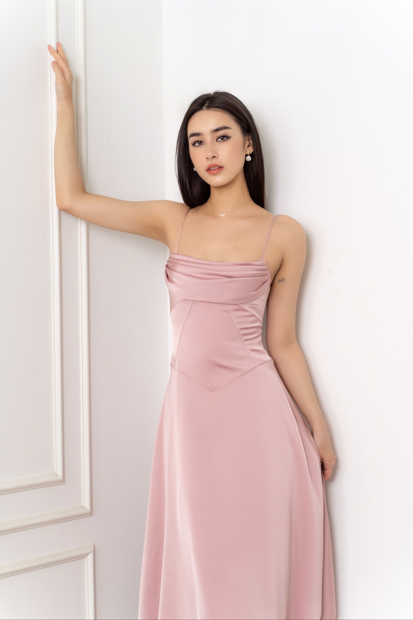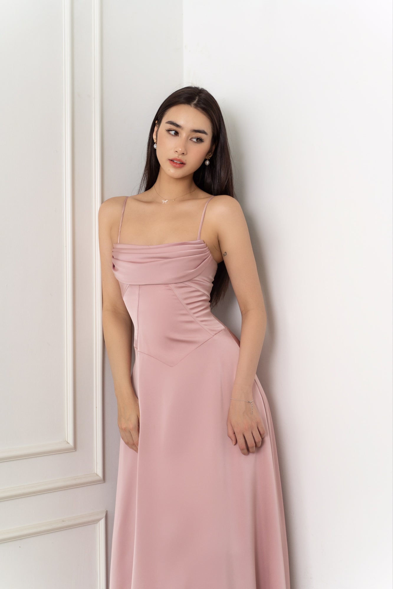 Thiết kế Noir với phom dáng 2 dây cổ điển với xếp nếp tinh tế trước ngực làm điểm nhấn đem đến một diện mạo thanh lịch, quyến rũ cho người mặc.