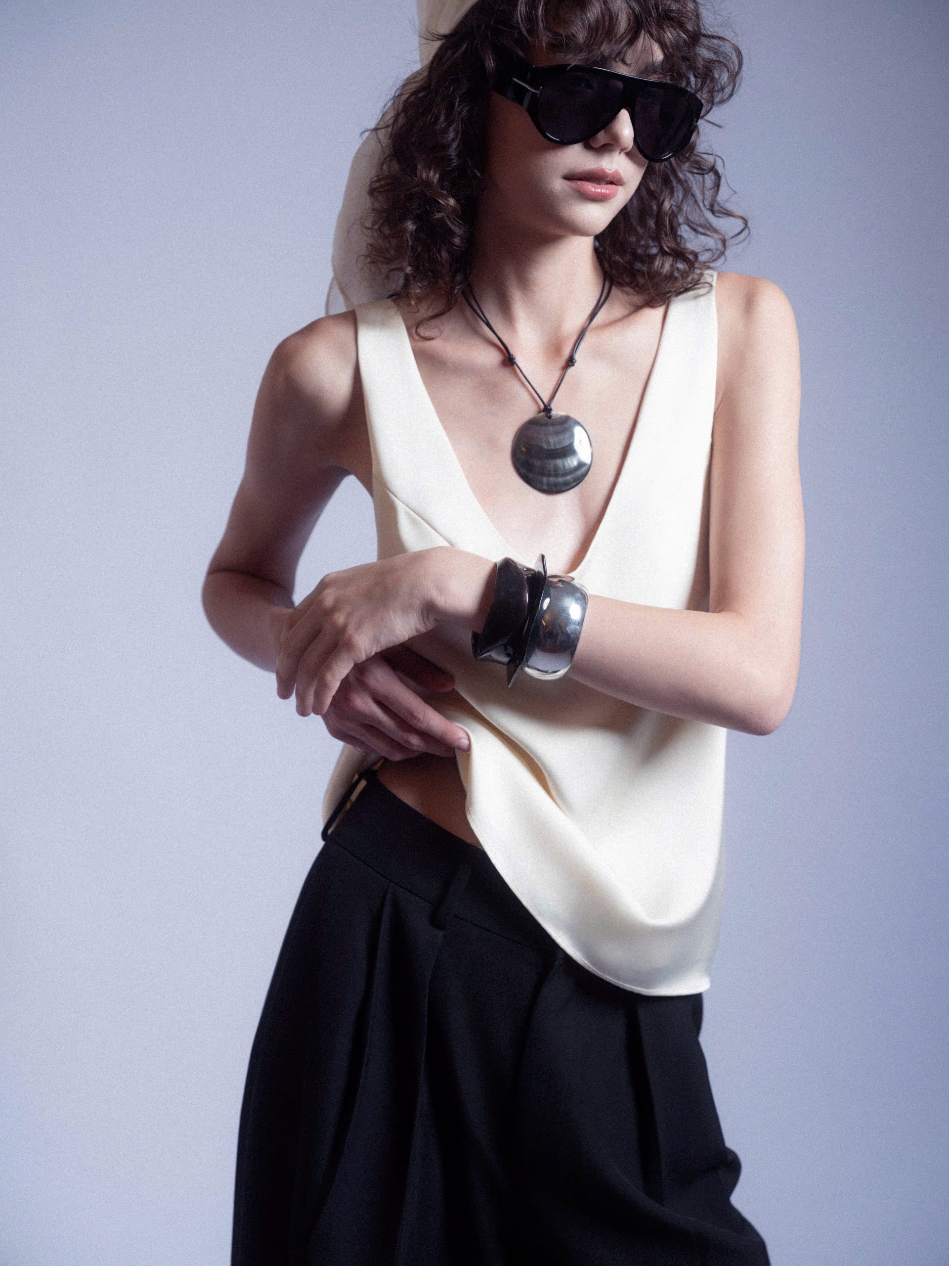 RAVEN PANT features a modern, sophisticated silhouette with long straight legs designed to elongate the figure and create a sleek, refined look.